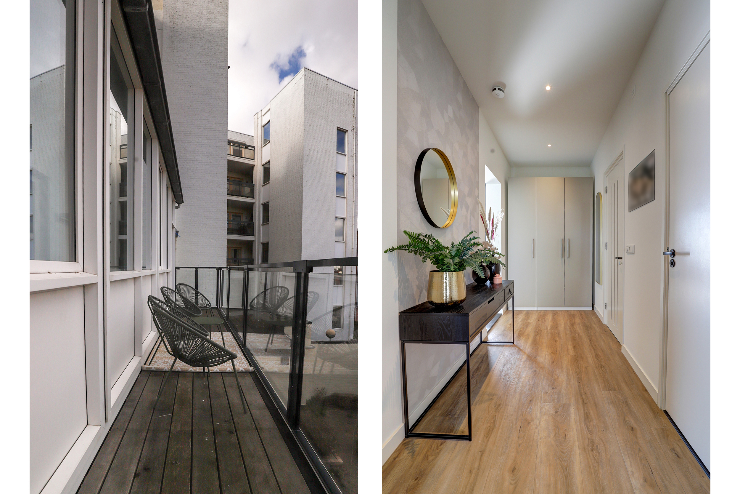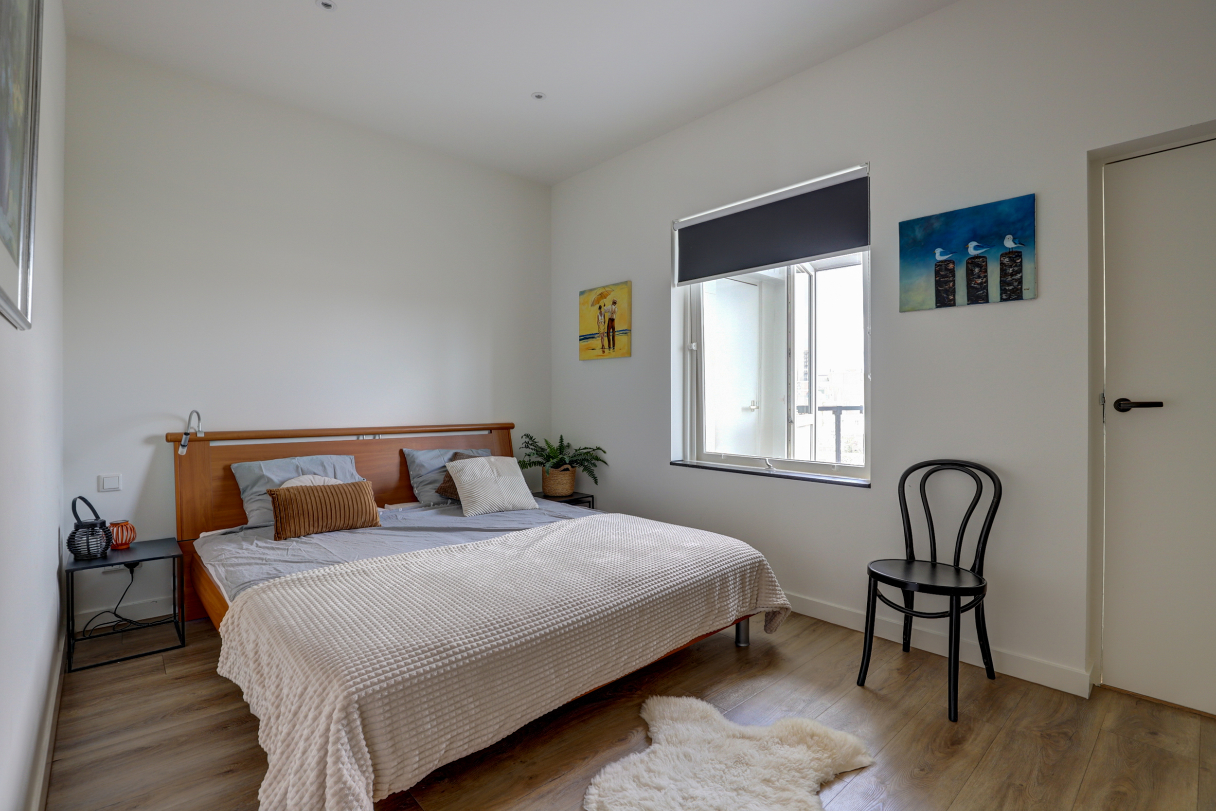 Er zijn twee comfortabele slaapkamers, beide met veel daglicht en vloerverwarming. De vernieuwde badkamer is voorzien van een moderne inloopdouche en wastafel. Daarnaast is er een aparte wasruimte met aansluitingen voor wasmachine en droger. Vanuit de hal is het balkon bereikbaar, dat een fraai uitzicht biedt over de stad.