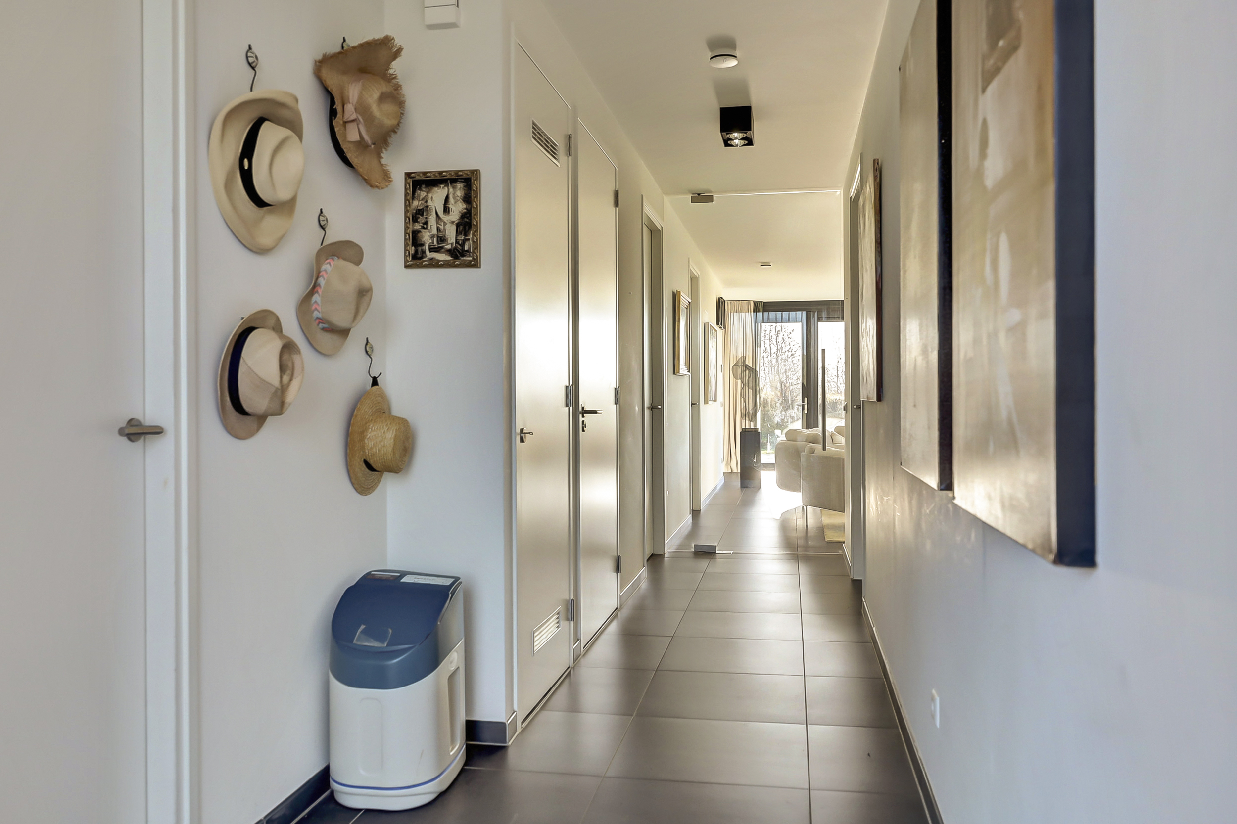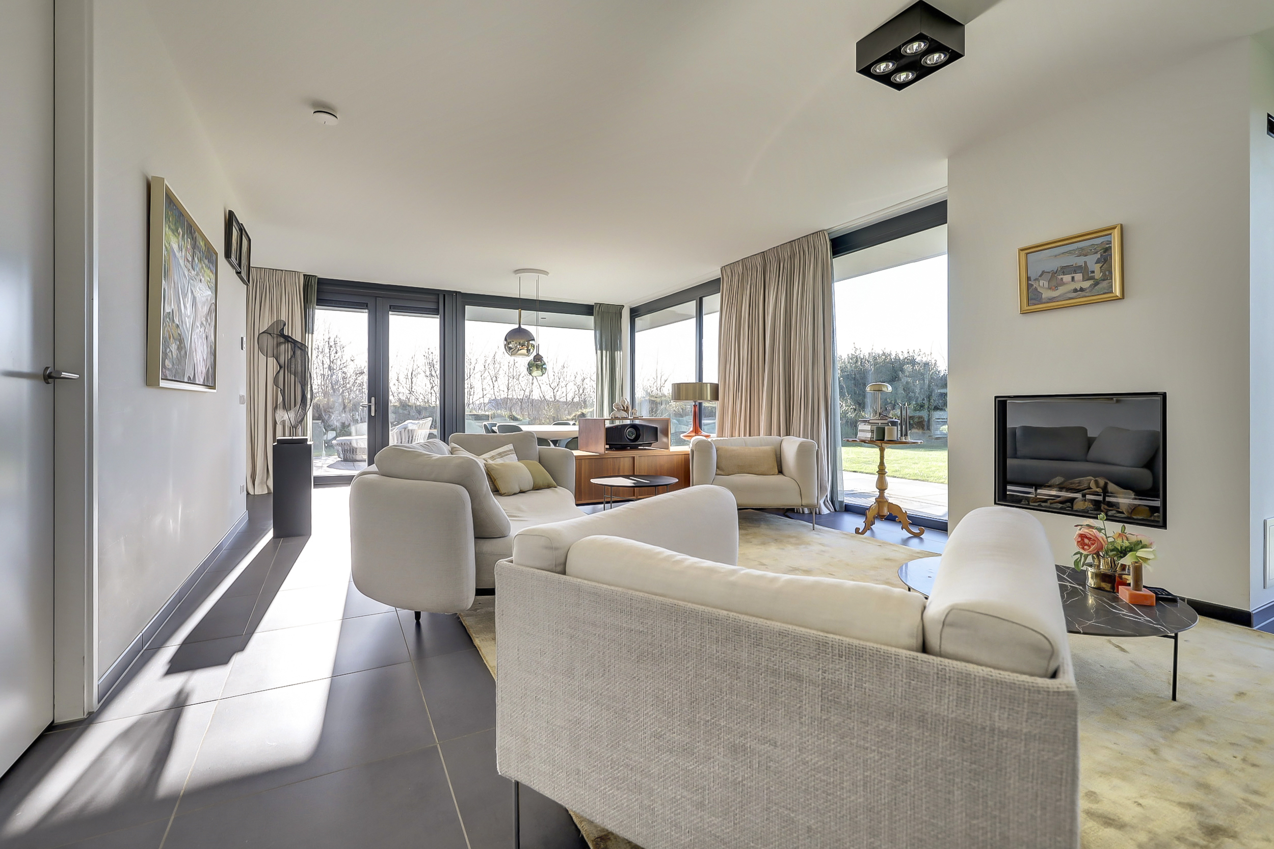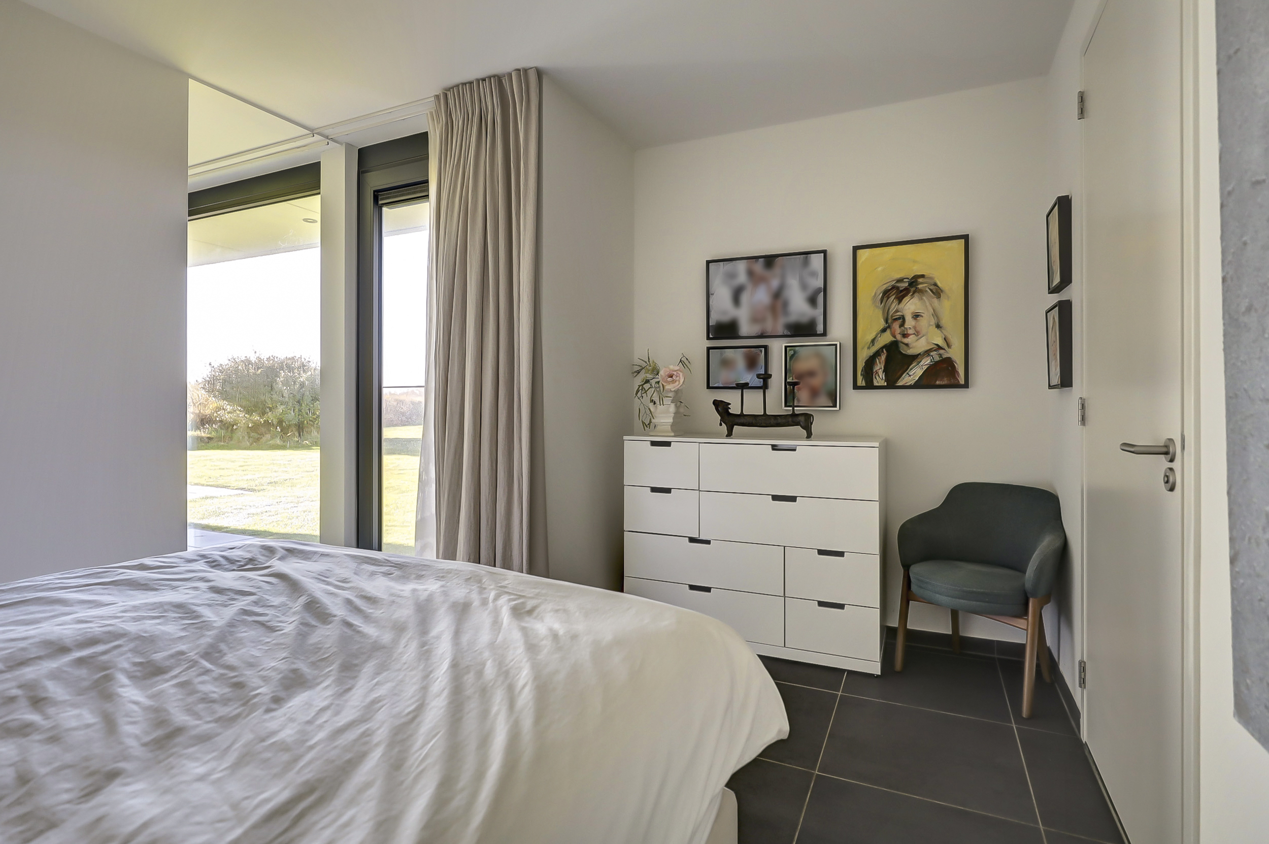 Diese barrierefreie Villa aus dem Jahr 2019 hat ein Volumen von 502 m³. Die schönen Innenräume gehen nahtlos ineinander über. Dank der Glasfront auf der gesamten Gartenseite fällt viel Licht in die offene Küche und das gemütliche, geräumige Wohnzimmer. Von hier aus genießen Sie einen fantastischen Blick auf die großzügige, halb überdachte Terrasse und den Garten, der die gesamte Villa umgibt. Mit vier Schlafzimmern und zwei luxuriösen Badezimmern hat jeder seinen eigenen Bereich.
