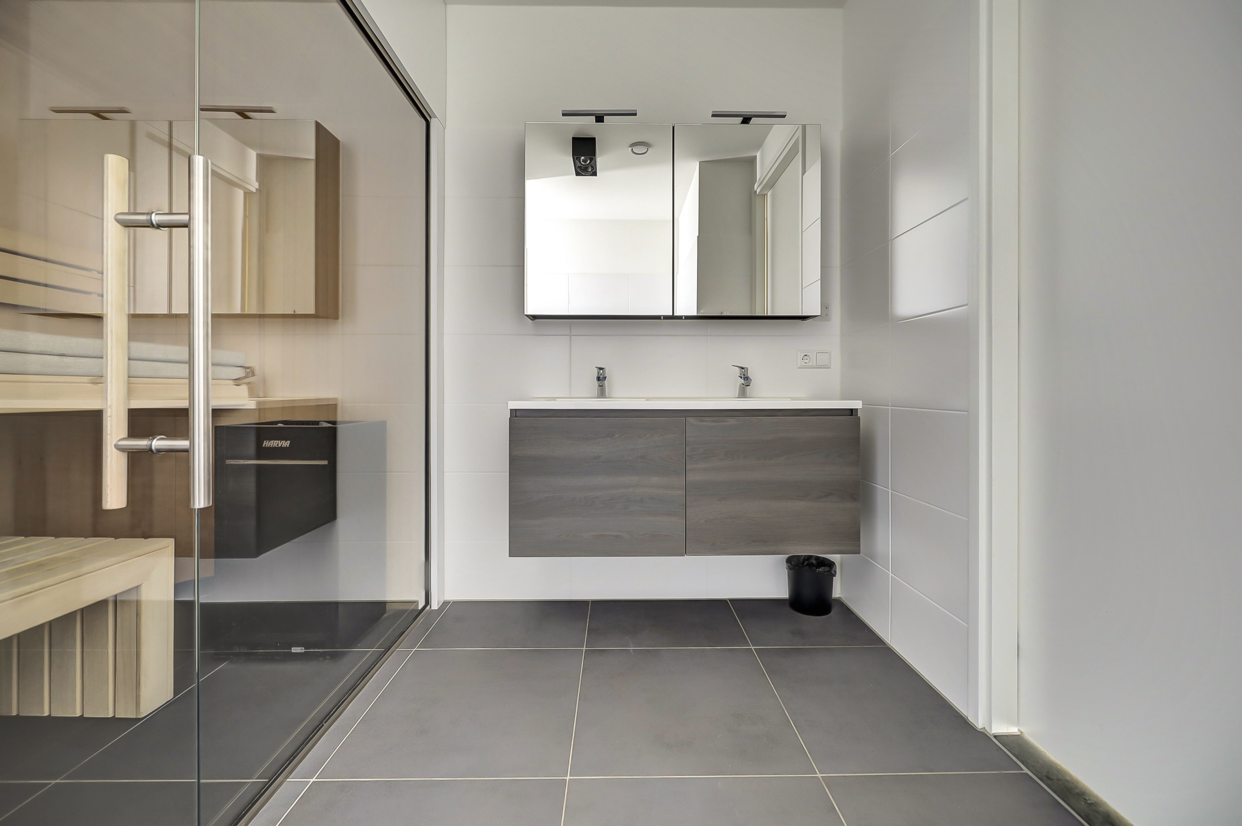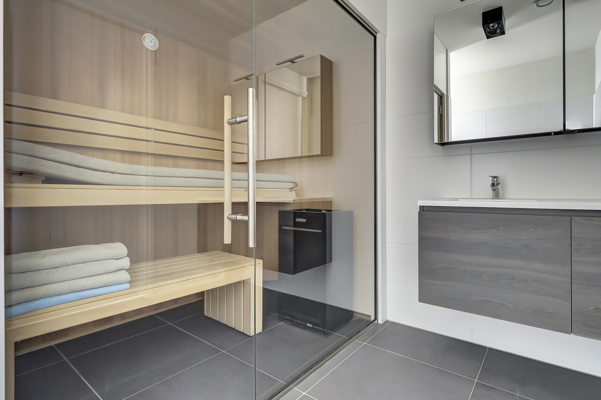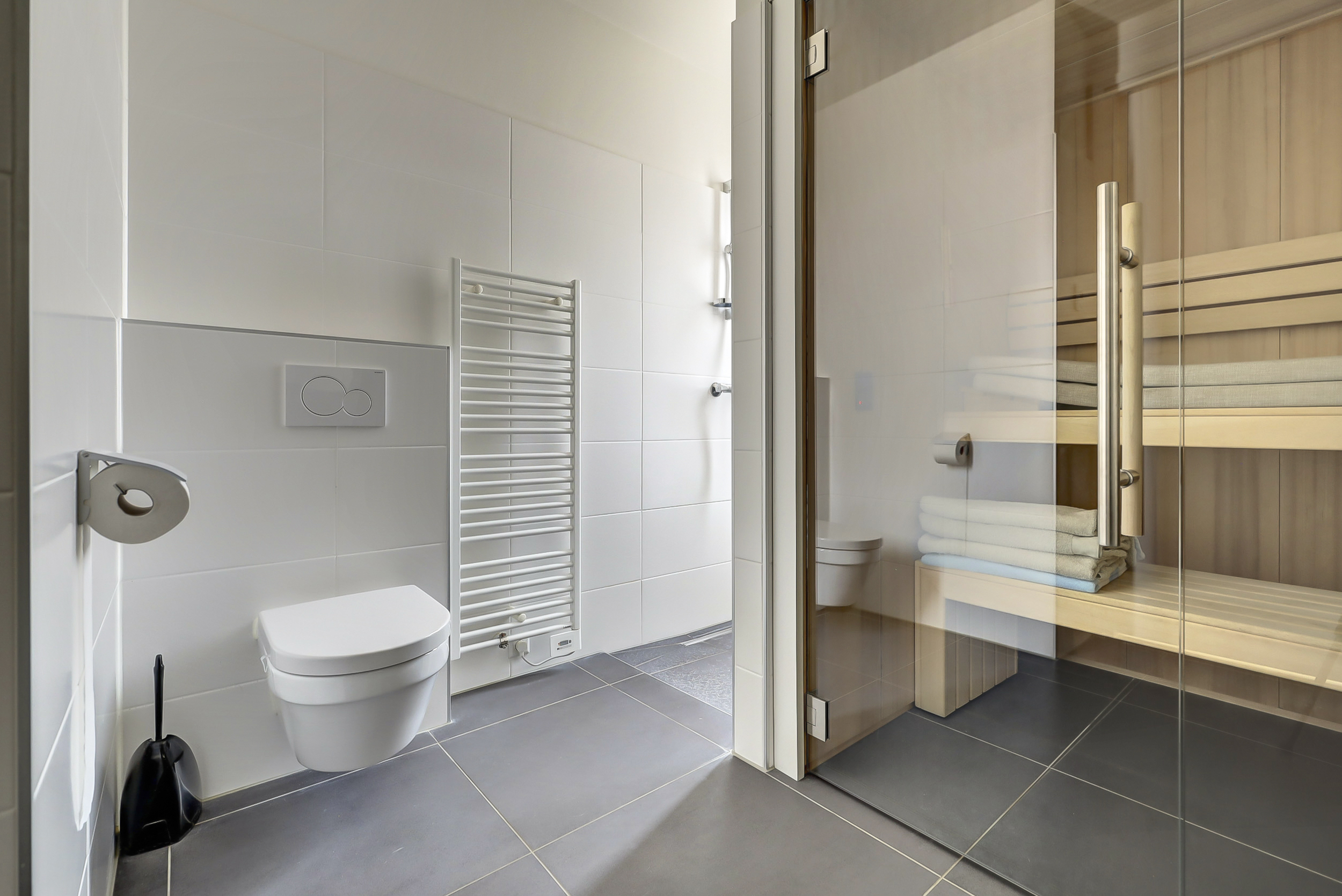 Die Wohnung ist mit drei Schlafzimmern ausgestattet, davon eines mit begehbarem Kleiderschrank, sowie zwei luxuriösen Badezimmern. Das luxuriöse Hauptschlafzimmer ist mit einem begehbaren Kleiderschrank und einem eigenen komfortablen Badezimmer mit Waschtisch, Badewanne und Toilette ausgestattet. Im Zentrum der Villa befindet sich das zweite Badezimmer mit ebenerdiger Dusche, Waschtisch, Toilette und moderner Sauna. Außerdem gibt es ein separates Gäste-WC, einen praktischen Hauswirtschaftsraum mit Waschmaschinen- und Heizungsanschlüssen sowie zusätzlichen Stauraum.
