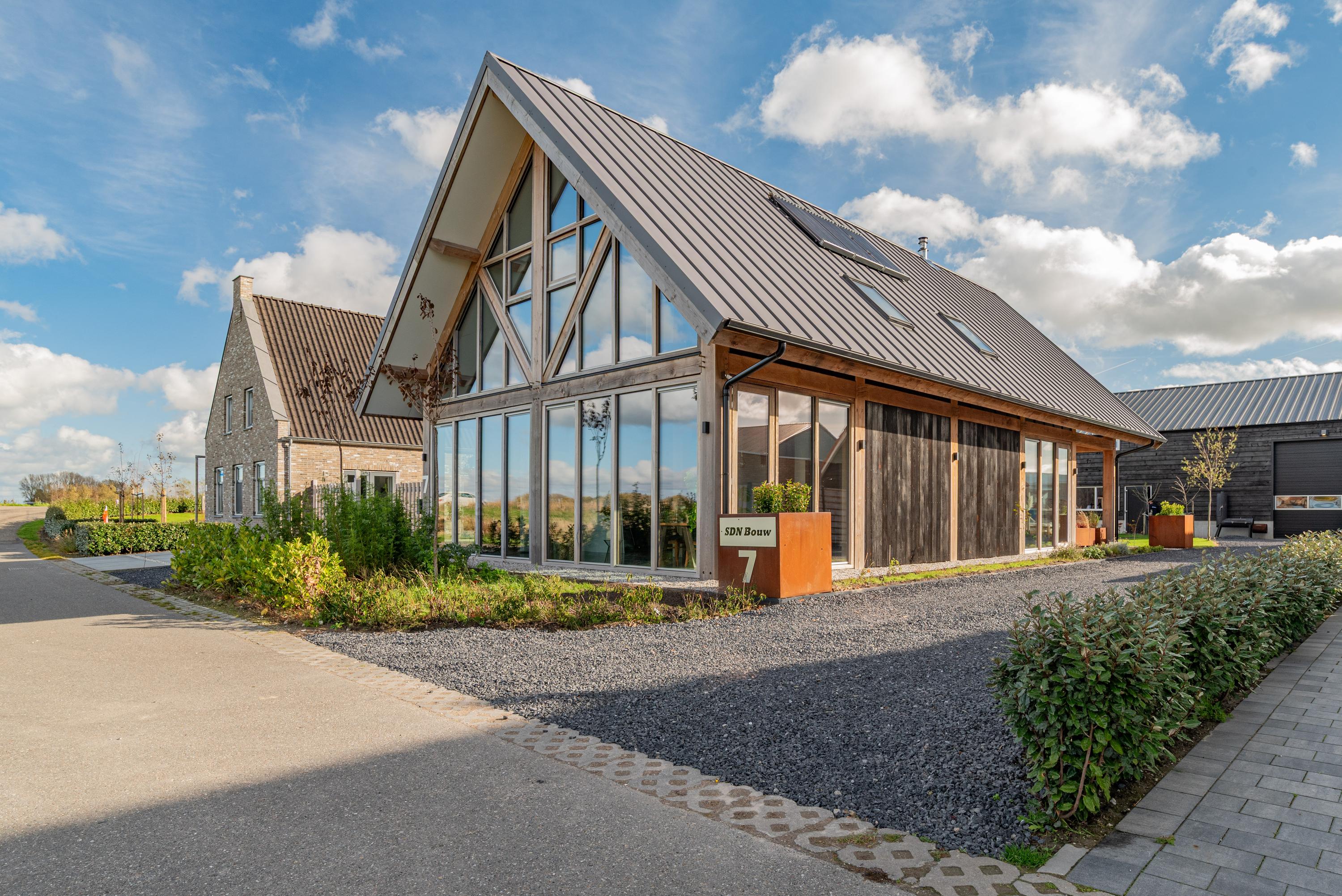 Riante hal met toilet, grote kastenwand en praktische berging/technische ruimte. Keuken die – na realisatie van een nieuwe keuken in de living – uitstekend dienst kan doen als bijkeuken. Enorme living met imposante trapopgang, zeer grote trapkast en een aparte werkkamer. Aan de voorzijde een schitterende glazen pui met panoramisch uitzicht over de landerijen: het voelt alsof u midden in het groen zit. Aan de achterzijde een indrukwekkende pui tot aan de nok, die vloeiend overgaat in een prachtige veranda. Een heerlijke plek om tot rust te komen.
