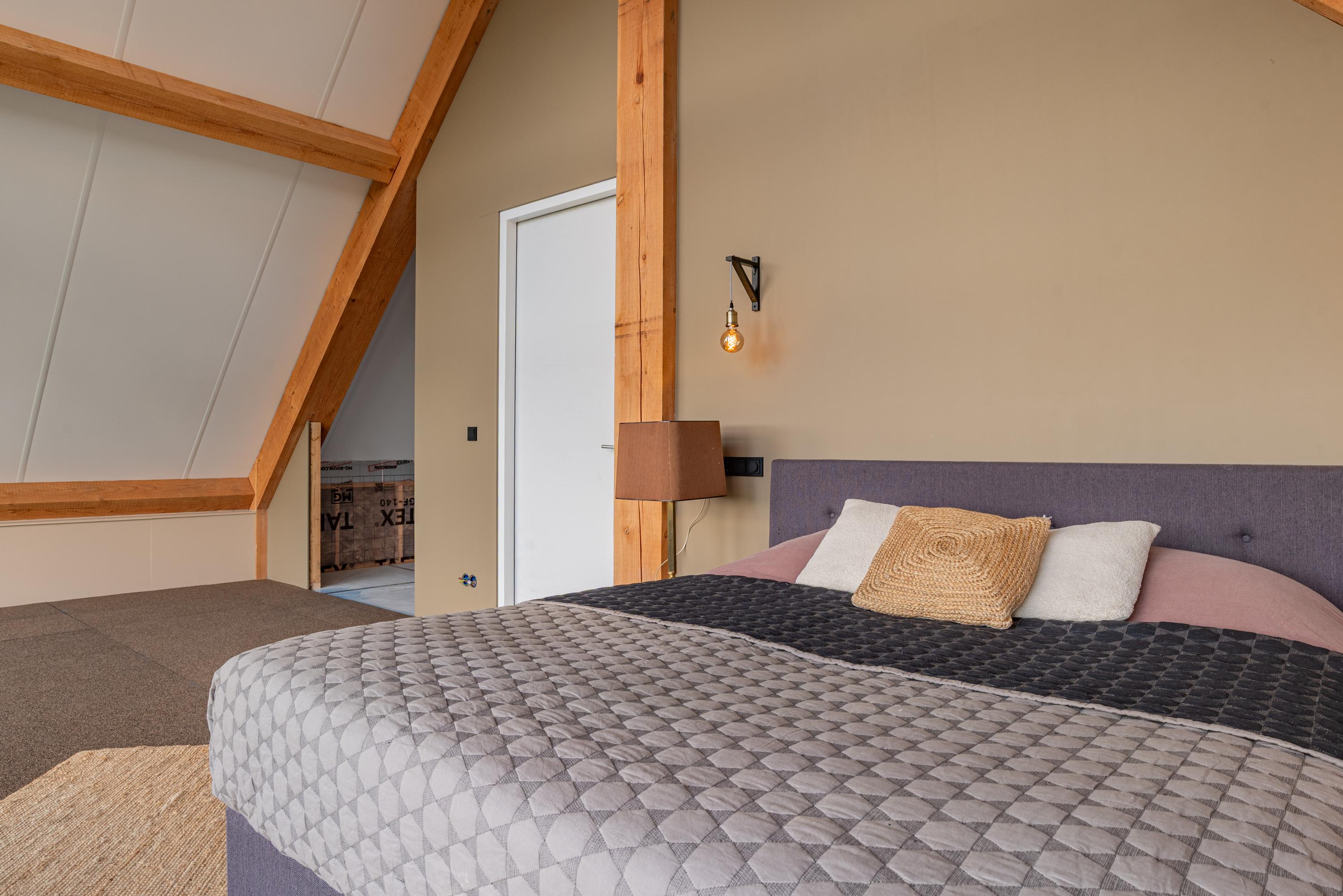 Riante open overloop met twee slaap-/inloopruimtes. Er is momenteel 1 slaapkamer gerealiseerd met een open ruimte waar mogelijk een inloopkast gecreëerd kan worden. De ruime overloop kan naar eigen invulling opgedeeld worden. Denk bijvoorbeeld aan 2 riante slaapkamers of een werkkamer en extra slaapkamer. Aansluitingen voor een royale badkamer zijn al aanwezig tot in de onderliggende ruimte en kunnen makkelijk worden doorgetrokken.
