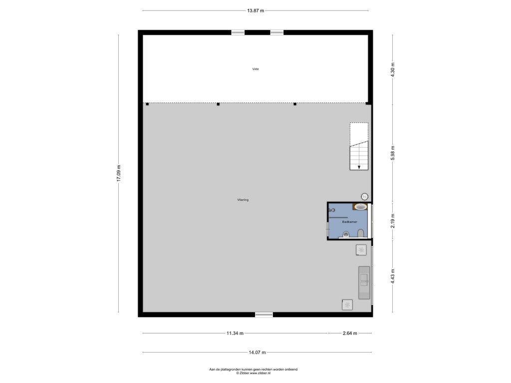 Verdieping: ca. 12,5 × 14 m, inclusief handige kitchenette en een badkamer op de verdieping.