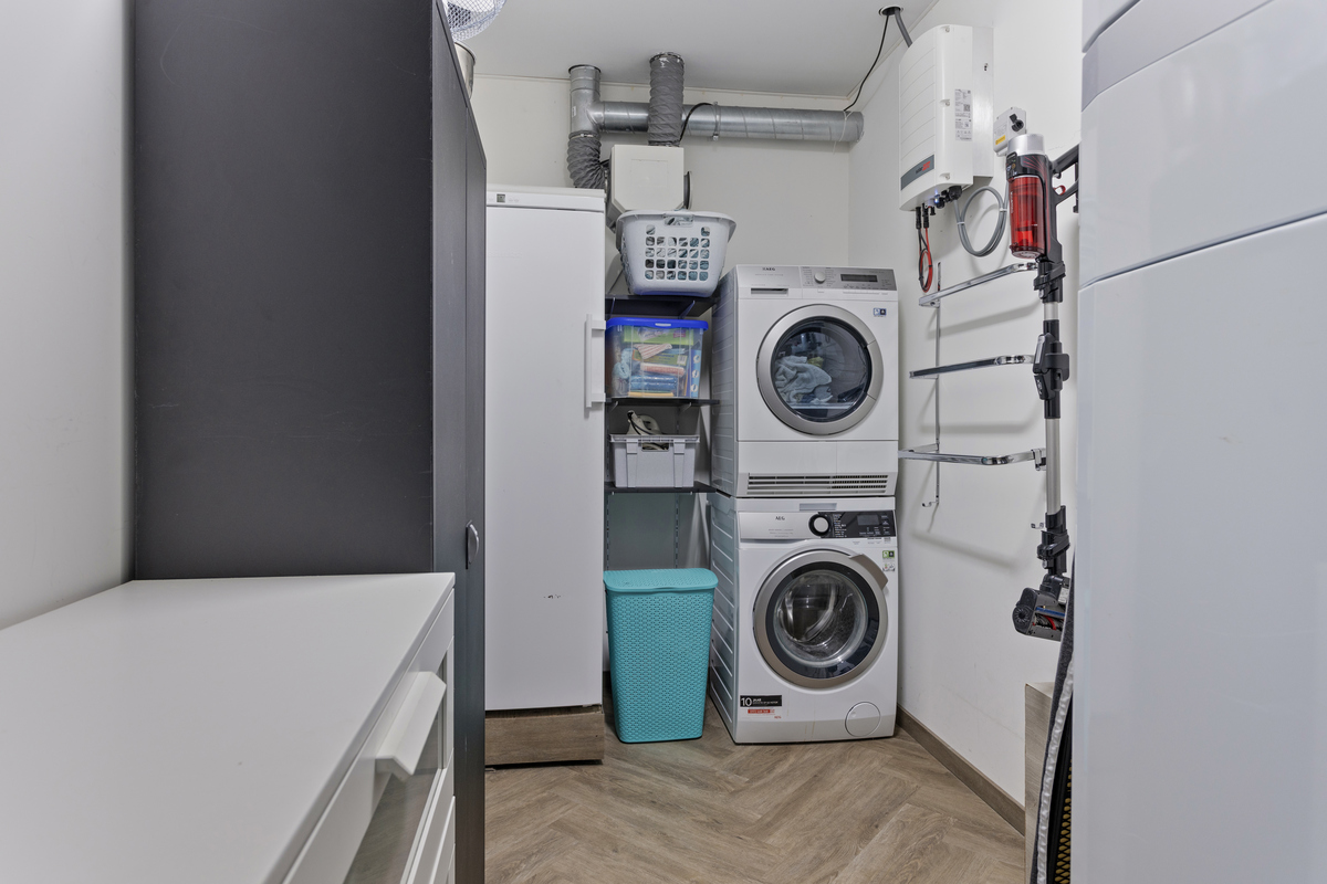 Auch in Sachen Stauraum ist an alles gedacht worden. Der interne Abstellraum mit Anschluss für Elektrogeräte ist vom Wohnzimmer aus leicht zugänglich. Die beiden Abstellräume im Außenbereich sind ideal für die Unterbringung von Gartenmöbeln, Fahrrädern usw. An Platz mangelt es in diesem Familienhaus nicht. Sie können auf dem Privatgrundstück parken und die Kinder können im eingezäunten Garten toben oder sich unter der Veranda ausruhen. Dieses Haus fühlt sich an wie ein Zuhause fern von zu Hause.
