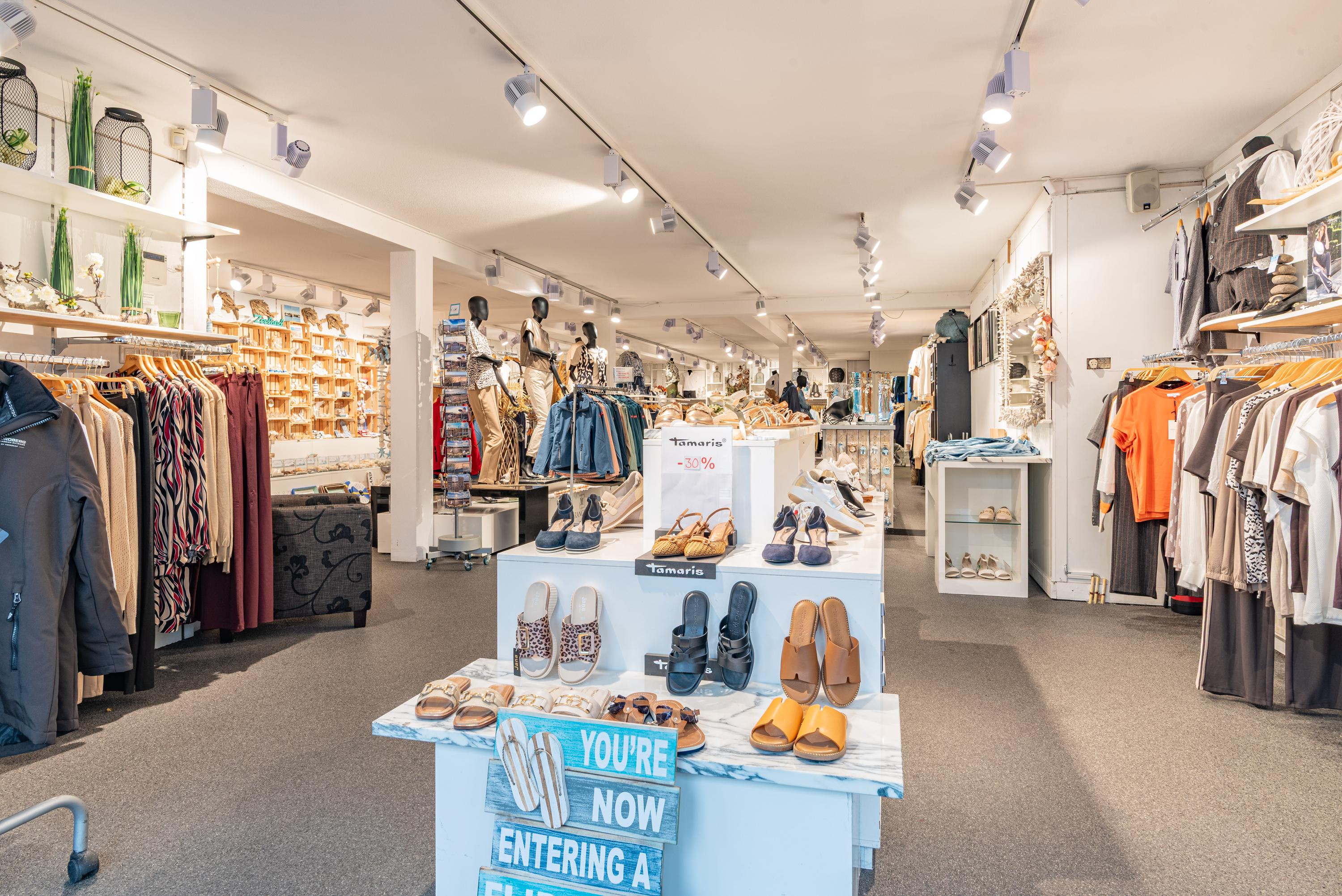 De ruime winkelvloer wordt momenteel benut als kledingwinkel met diverse accessoires. Achterin de winkel is dan ook een rij met paskamers gerealiseerd. Naast deze paskamers is een kleine keuken gesitueerd, met aansluitend een toilet en een stookruimte.
