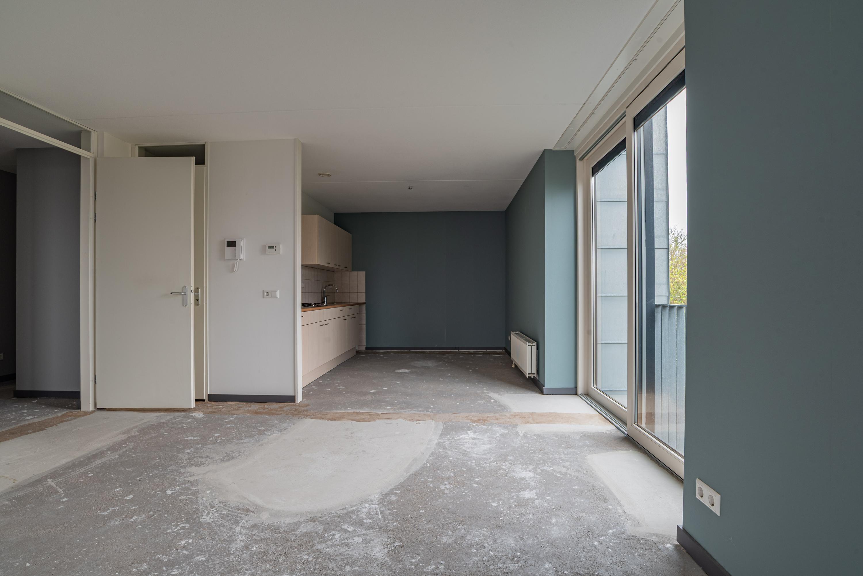 Via de entree van het appartement heb je toegang tot de slaapkamer, de berging, het separate toilet en de ruime woonkamer met open keuken. De woonkamer is licht en prettig van formaat en vormt samen met de open keuken een fijne leefruimte. Vanuit de grote slaapkamer bereik je de badkamer. Deze is verzorgd uitgevoerd en voorzien van een wastafel, een inloopdouche en een tweede toilet.