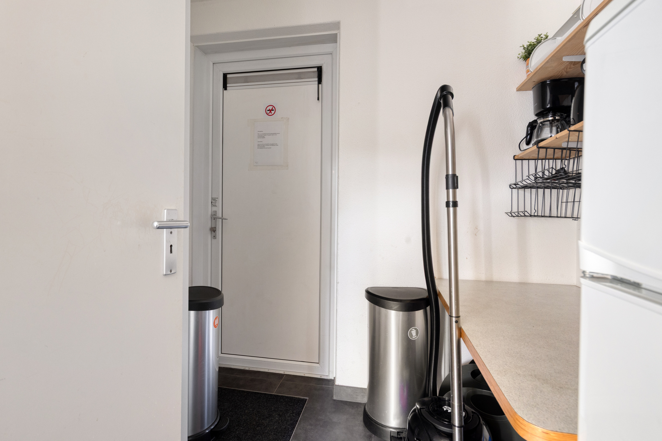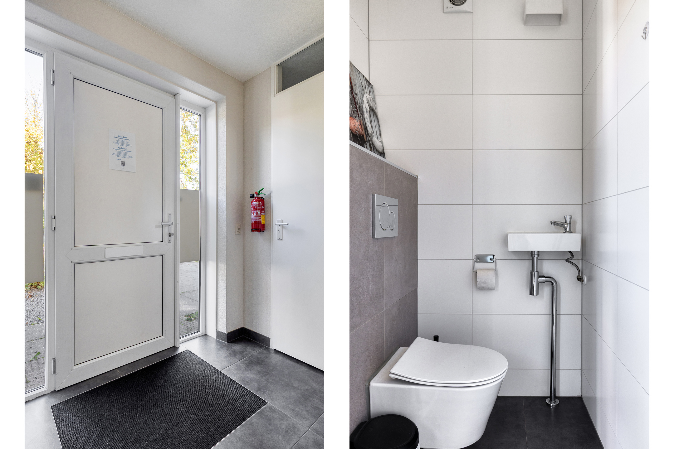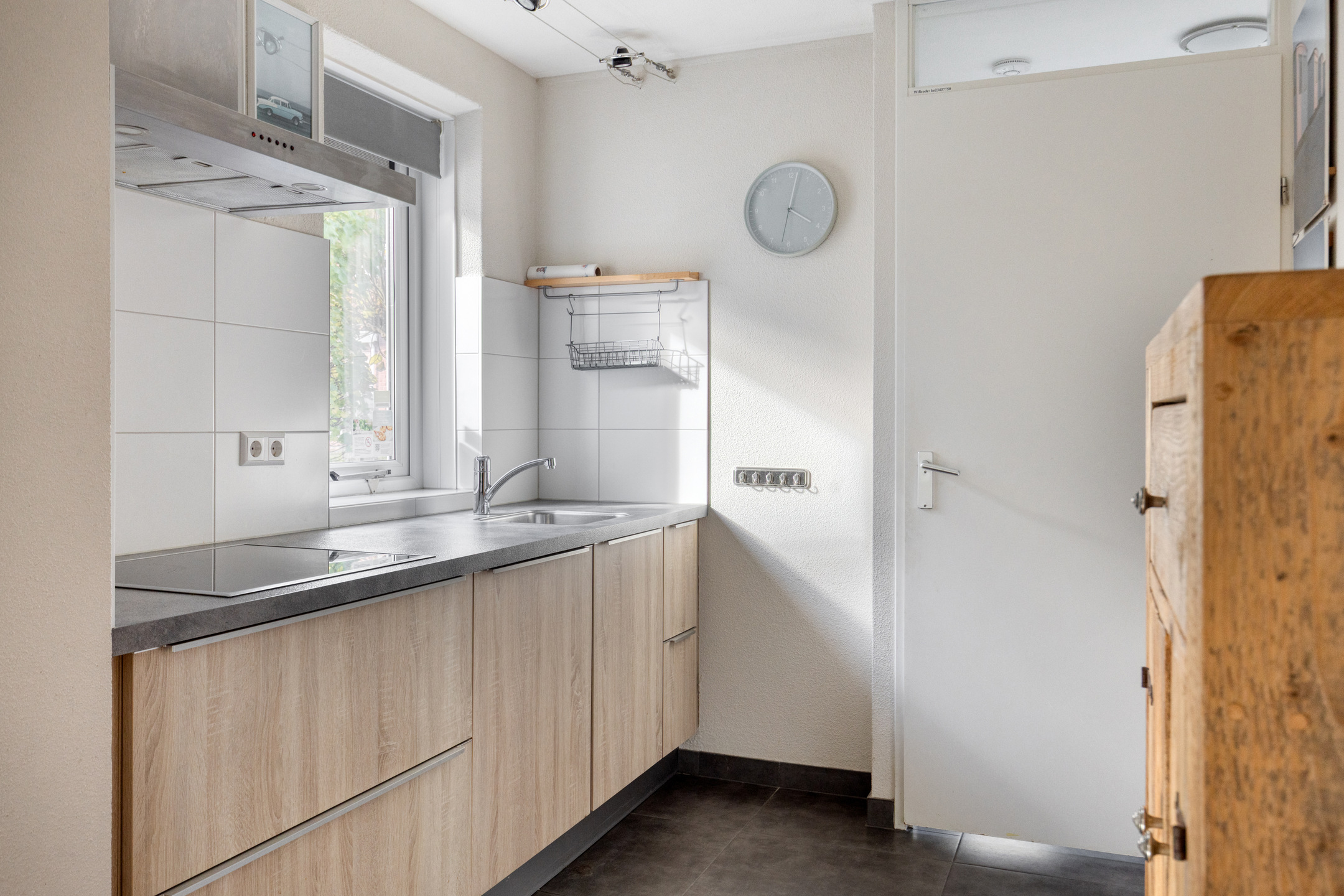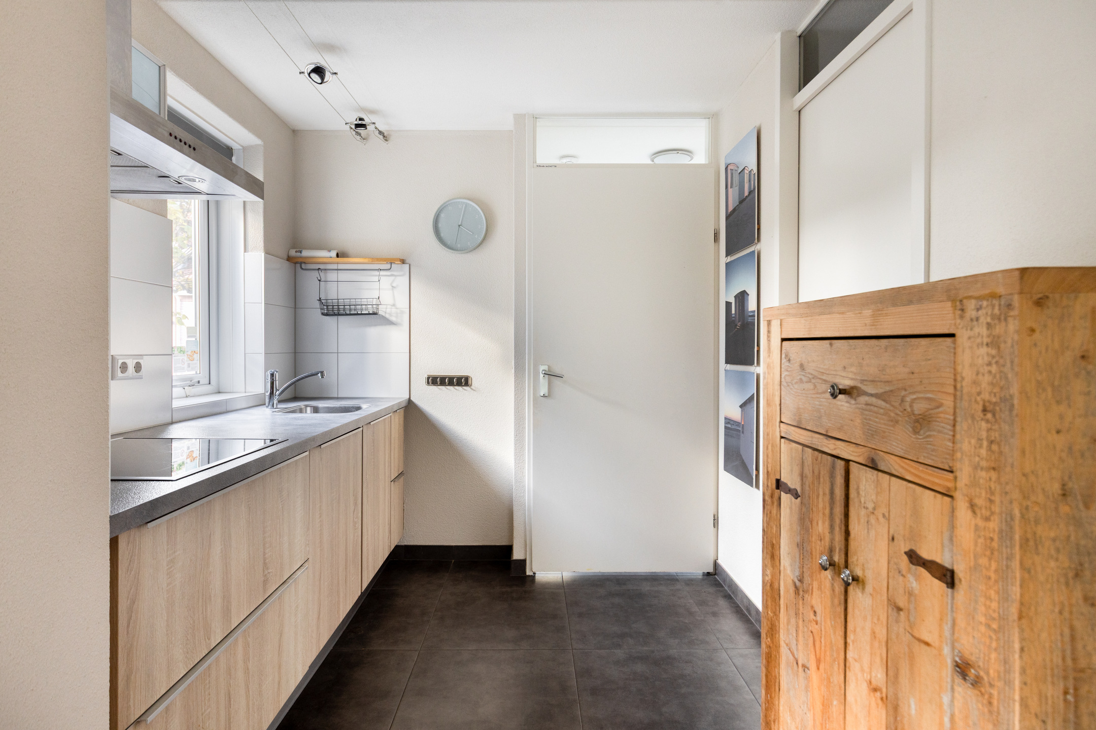 Bij binnenkomst via de entree vind je praktische kastruimte en een toilet. Vanuit de hal is er toegang tot de open keuken, voorzien van moderne inbouwapparatuur. De lichte woonkamer heeft een grote uitbouw met openslaande deuren naar de zonnige tuin, waar je volop kunt genieten van privacy en buitenleven. Vanuit de woonkamer is er toegang naar de privéruimte, hierin bevinden zich een slaapkamer en badkamer (voorzien van wastafel en inloopdouche). Aangrenzend aan de keuken bevindt zich de bijkeuken, met aansluitingen voor wasmachine en droger en extra bergruimte.