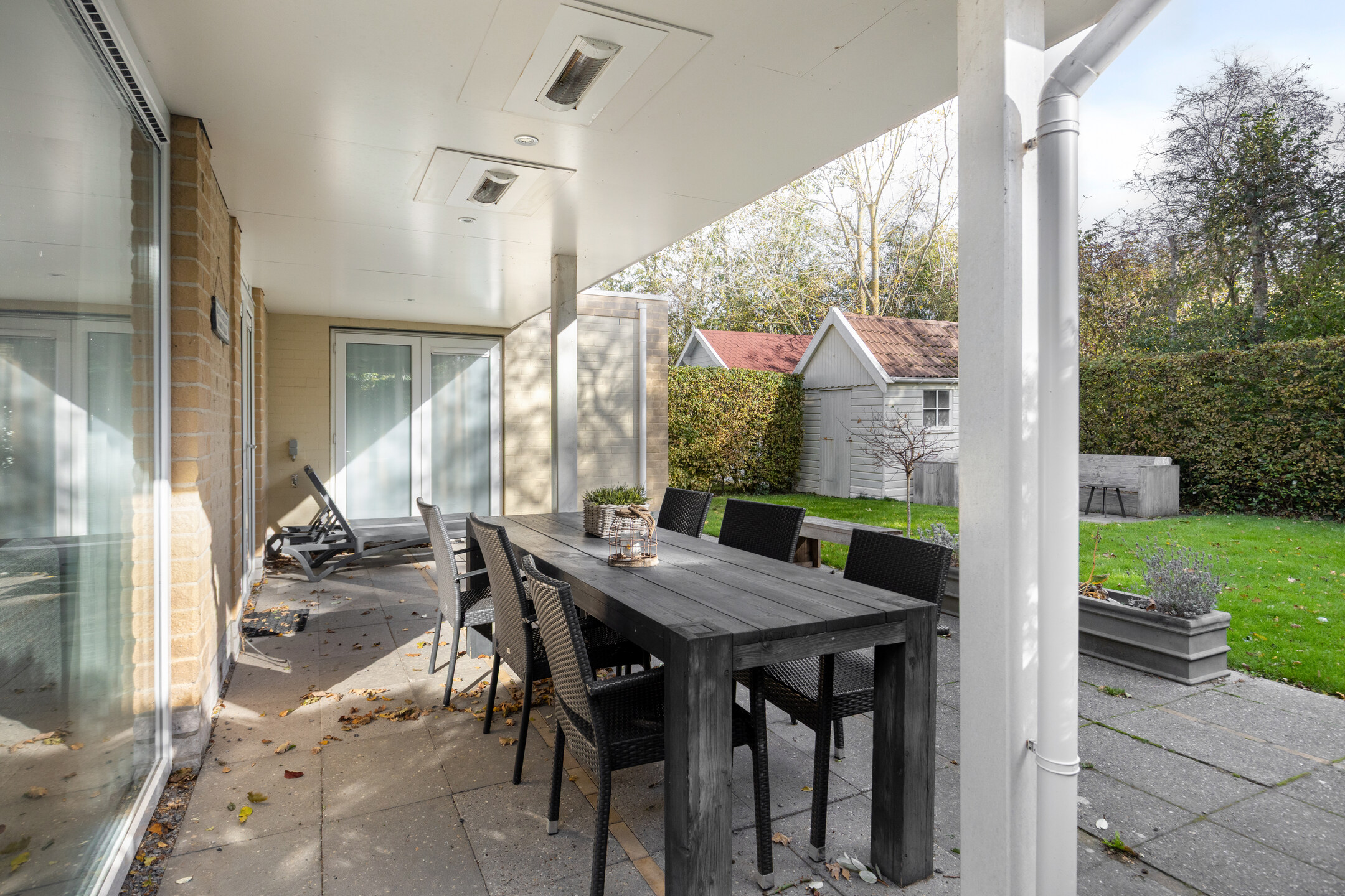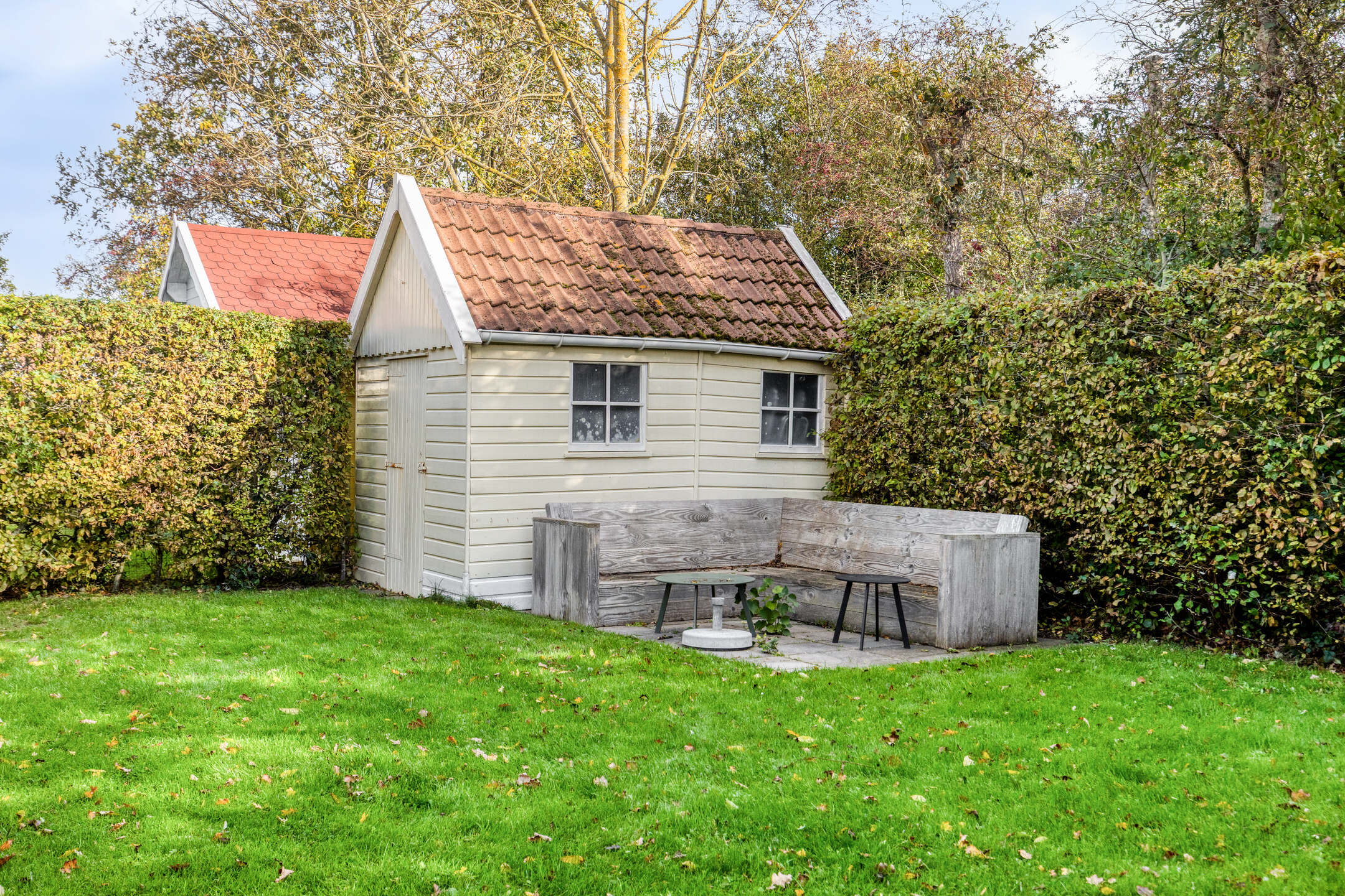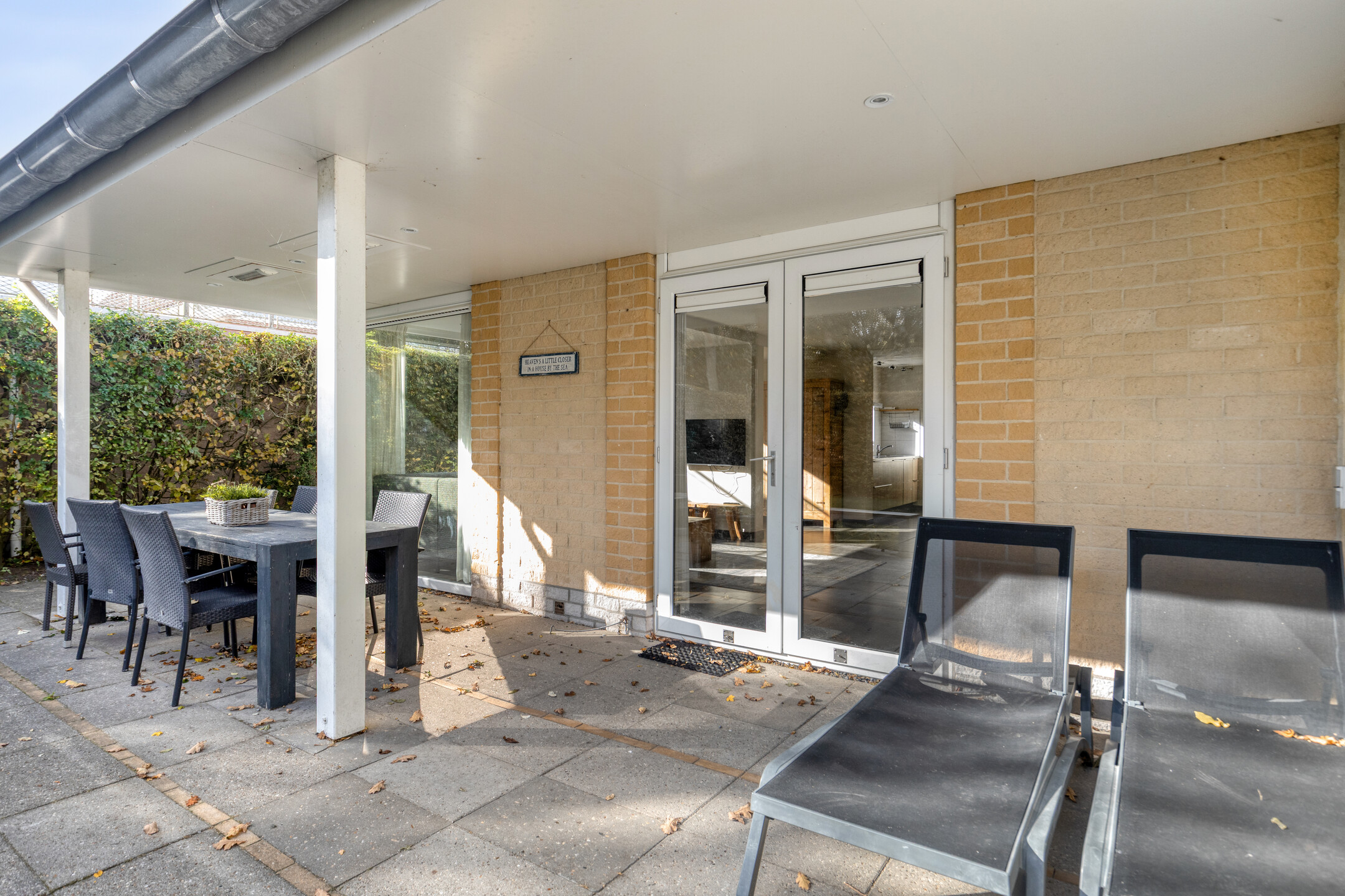 De woning beschikt over een verzorgde voortuin met ruimte om op eigen terrein te parkeren. Via de zijtuin is de achtertuin bereikbaar, waardoor er een fijne doorgang rondom het huis is. De achtertuin is heerlijk om te genieten van het buitenleven. Direct aan de woning bevindt zich een overkapping, perfect om in elk seizoen beschut buiten te zitten. Vanuit de woonkamer bieden openslaande deuren toegang tot de heerlijke achtertuin.