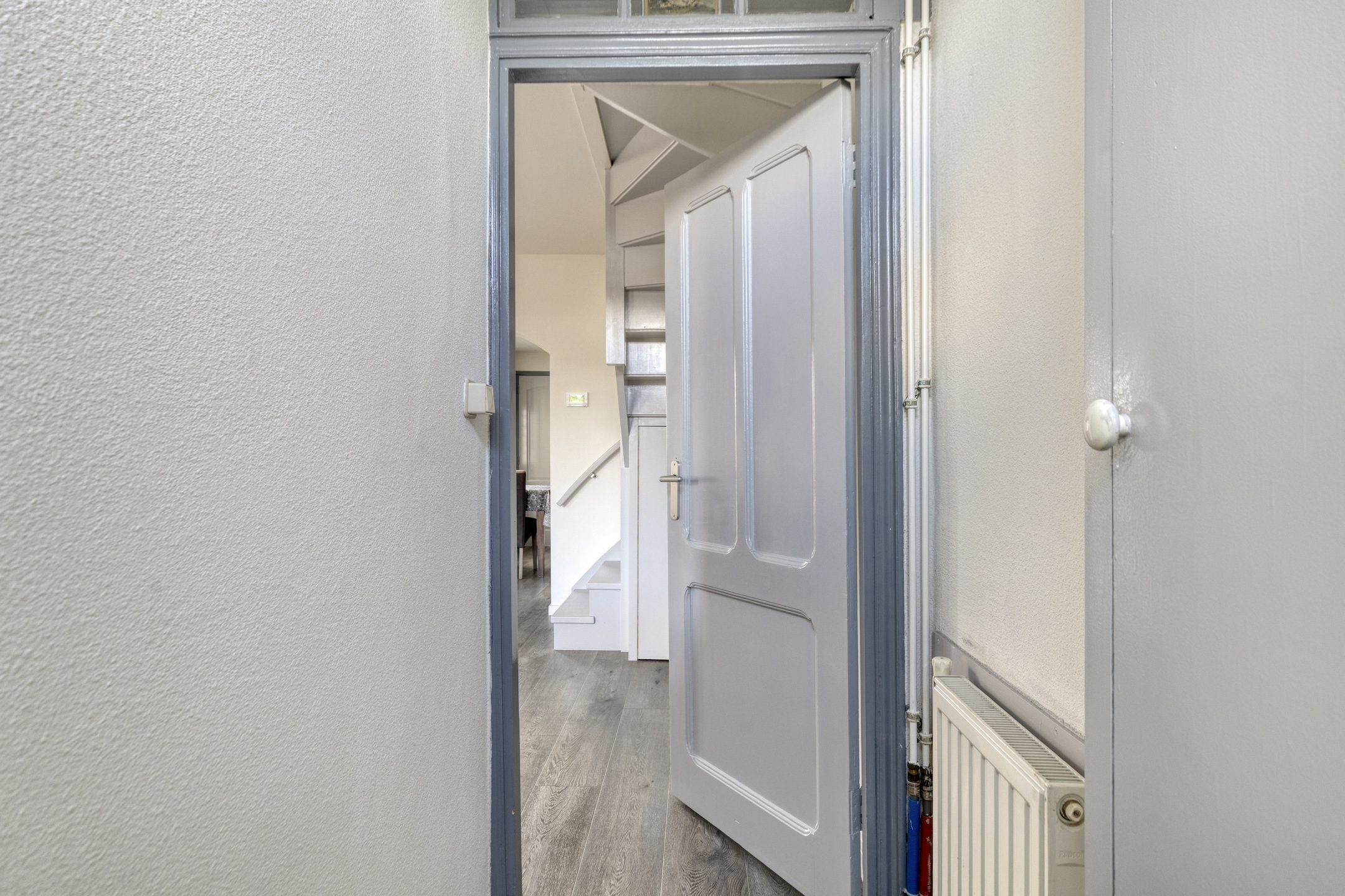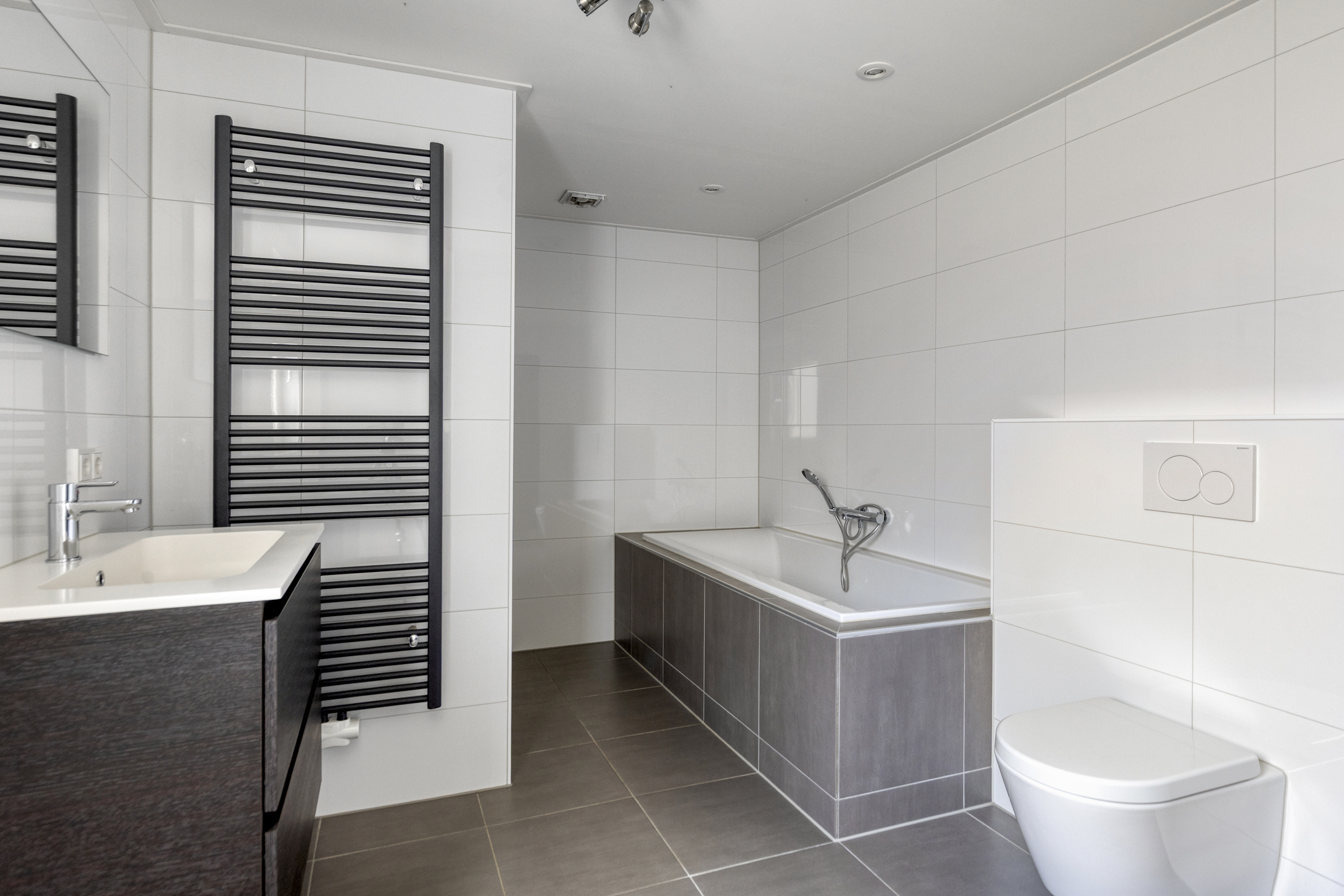 Bij binnenkomst vind je de entree met meterkast en toegang tot de gezellige woonkamer. Vanuit de woonkamer is er een doorgang naar de halfopen keuken, die is voorzien van moderne inbouwapparatuur. Vanuit de gang, met extra kastruimte, bereik je het toilet, evenals de vernieuwde badkamer. Deze is uitgerust met een tweede toilet, wastafel, inloopdouche en ligbad.