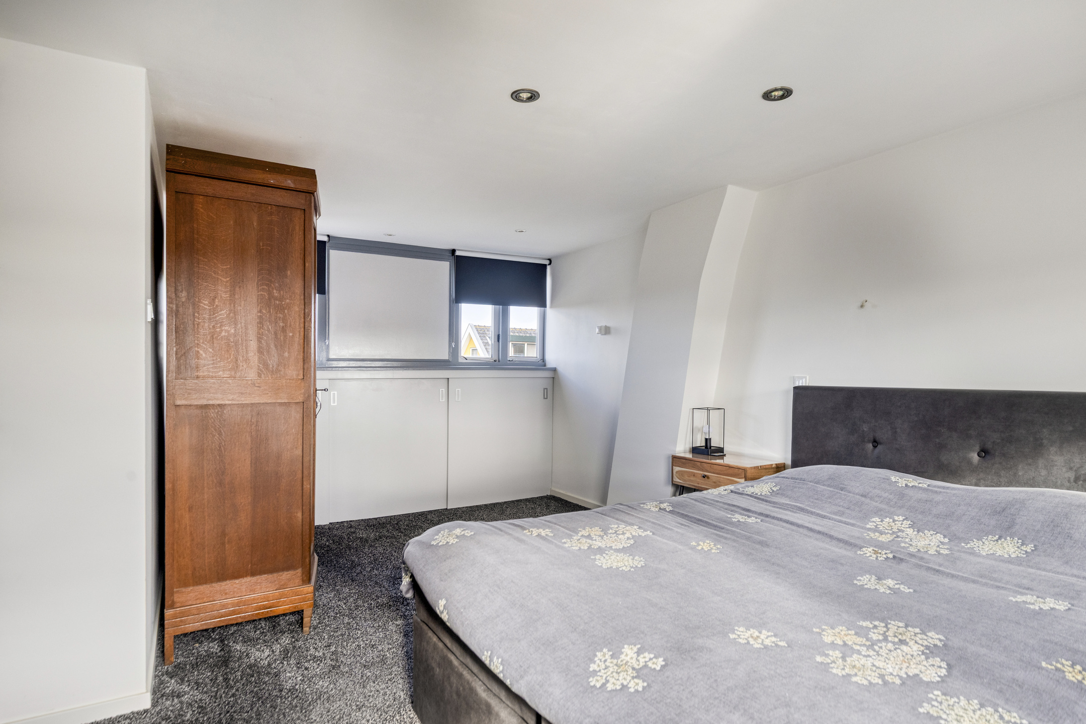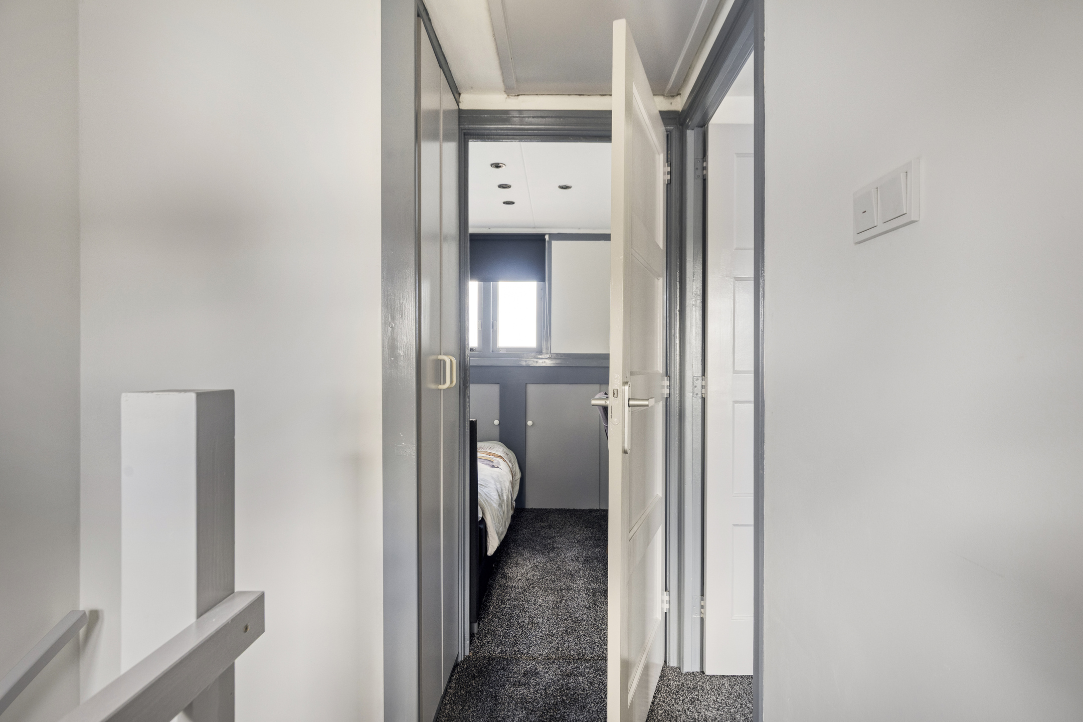 Via de vaste trap in de woonkamer kom je op de eerste verdieping. Hier zikn er twee ruime slaapkamers, beide voorzien van inloopkasten. Op de overloop is extra kastruimte aanwezig, wat zorgt voor praktische bergruimte.