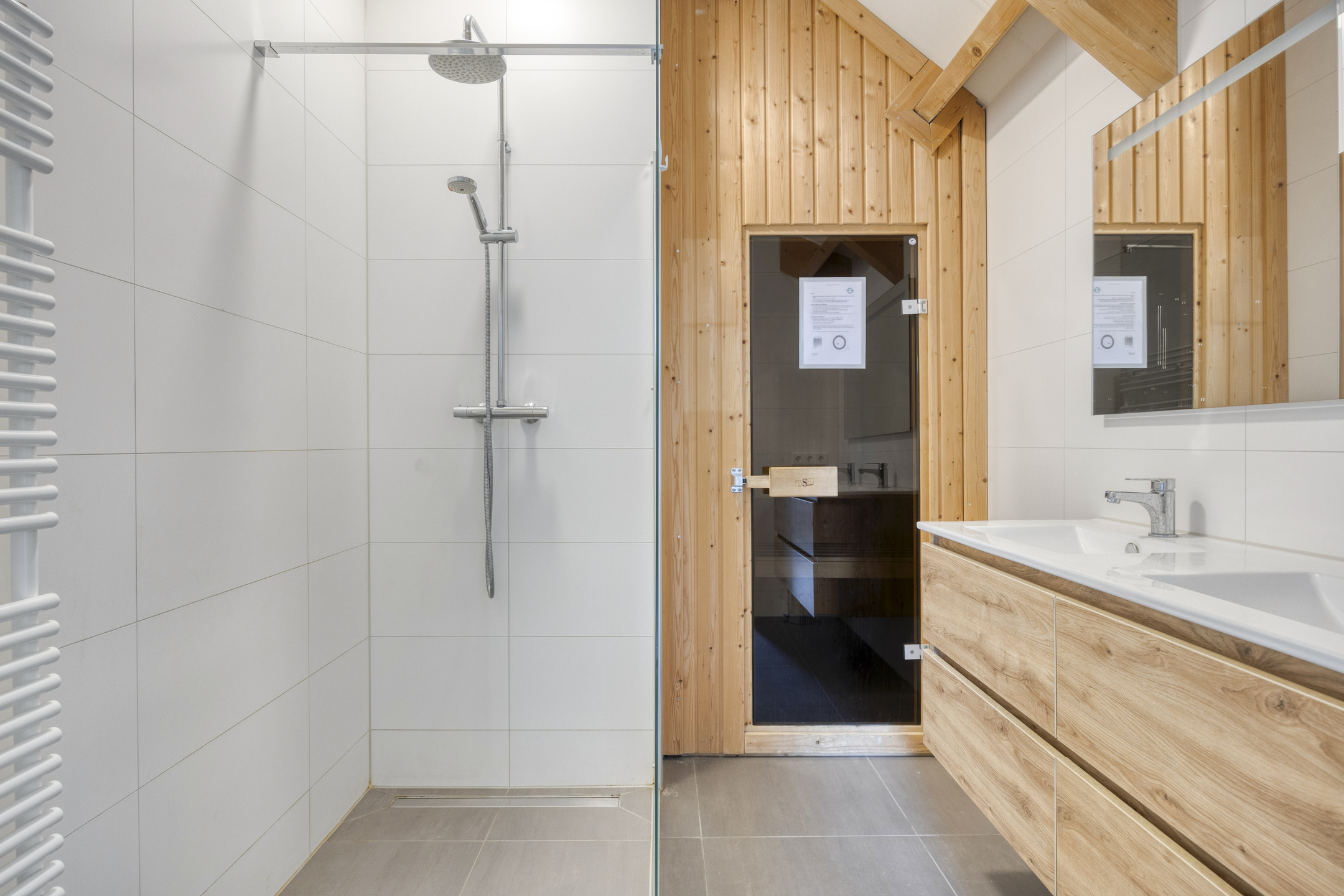 Via de vaste trap in de entree bereik je de eerste verdieping. De overloop geeft toegang tot een apart toilet, een handige bergruimte en drie comfortabele slaapkamers. Twee slaapkamers hebben toegang tot het heerlijke balkon. Daarnaast vind je hier de tweede badkamer, welke is voorzien van een inloopdouche, een modern dubbel wastafelmeubel en een sauna. Deze verdieping combineert optimaal comfort met ruimte en is ideaal voor gezinnen of grotere gezelschappen.