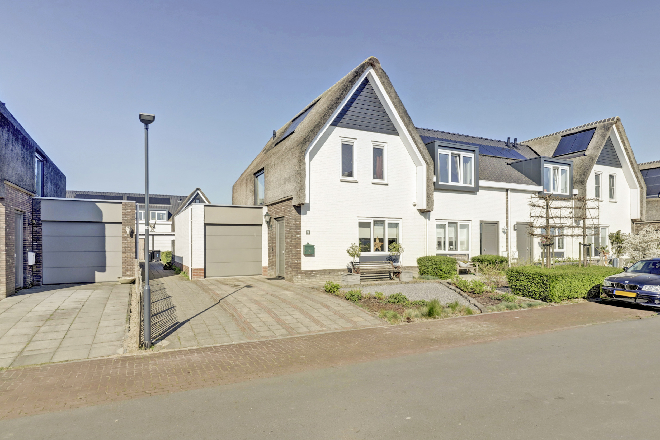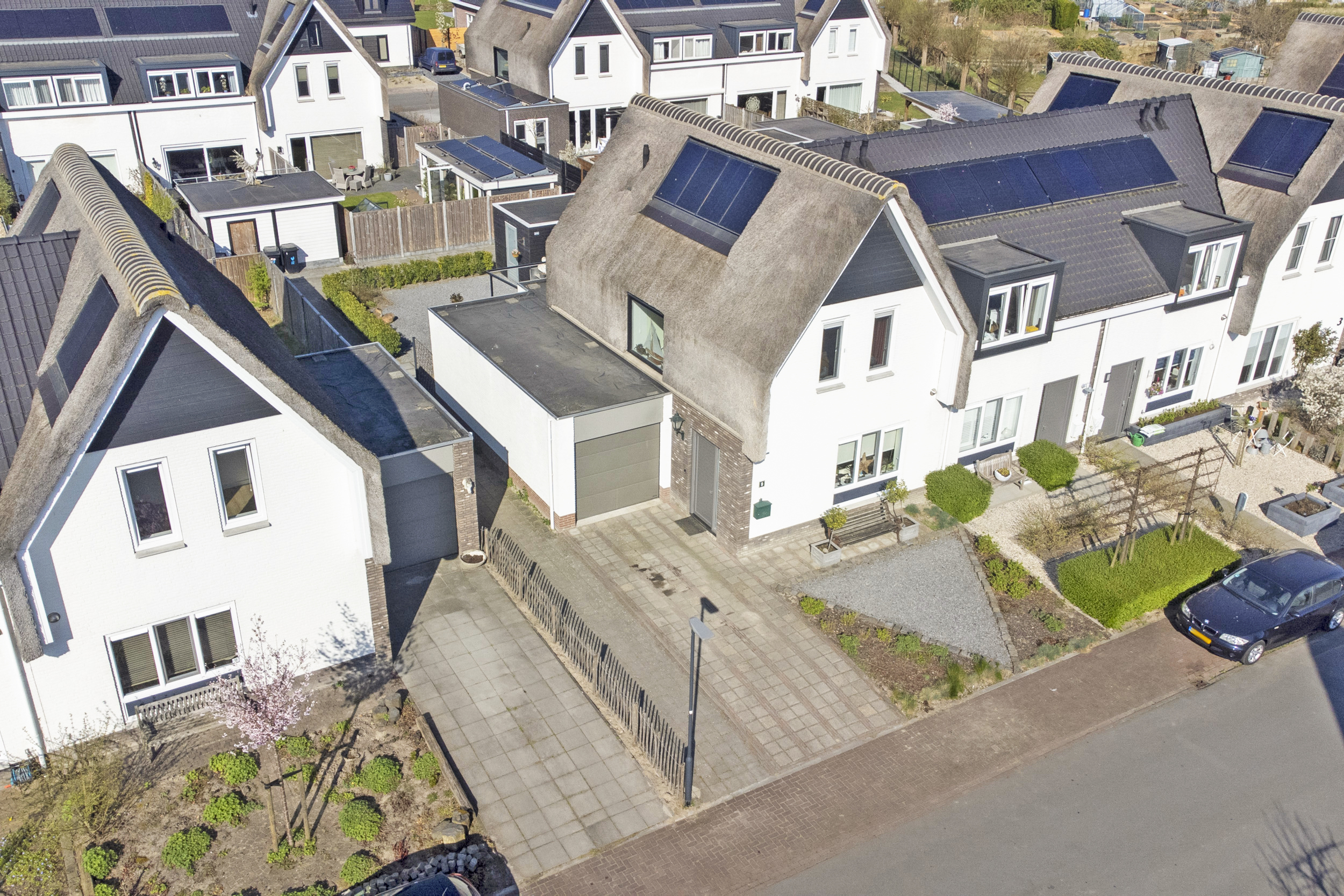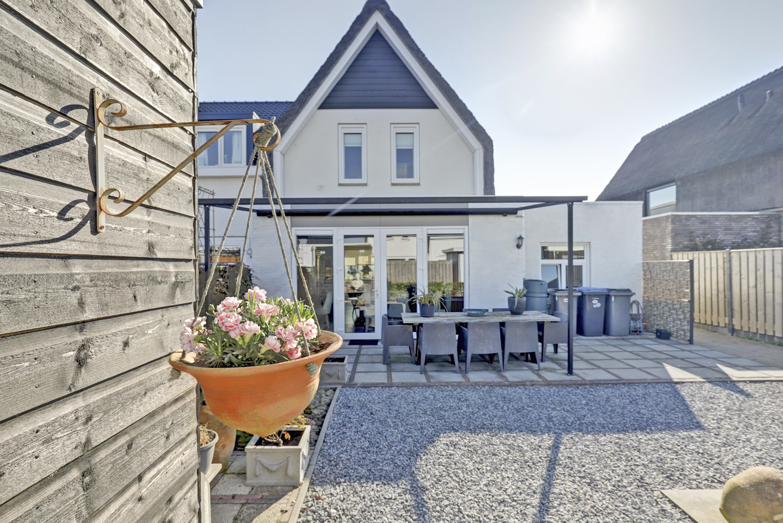 De woning beschikt over een uitgebouwde en lichte woonkamer. Er is een open keuken voorzien van moderne inbouwapparatuur. Dankzij de grote ramen is er veel lichtinval. Via de openslaande deuren bereik je de achtertuin, welke is gelegen op het westen. Aan de voorzijde van de woning is ruimte om te parkeren op de oprit. De aangebouwde garage is voorzien van elektra en een elektrische roldeur. Daarnaast is er in de achtertuin nog een vrijstaande berging aanwezig.