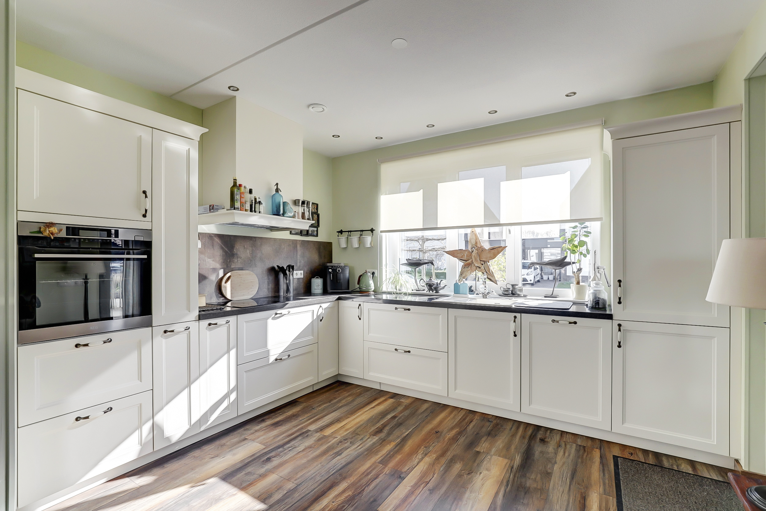 De aangebouwde garage is binnendoor bereikbaar en kan uiteraard als garage worden gebruikt.