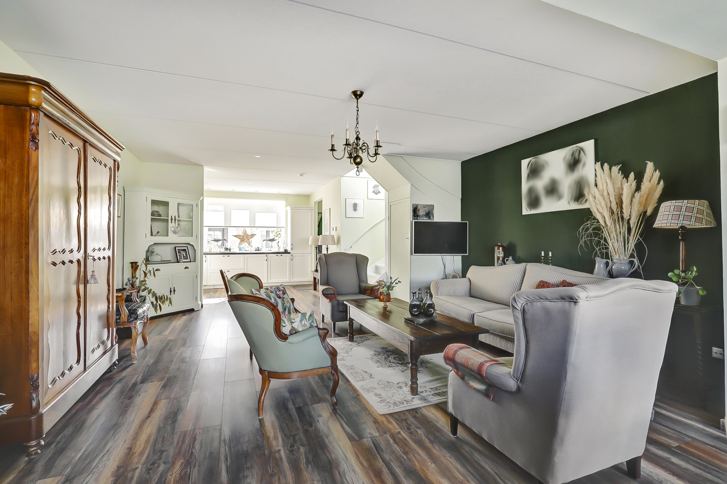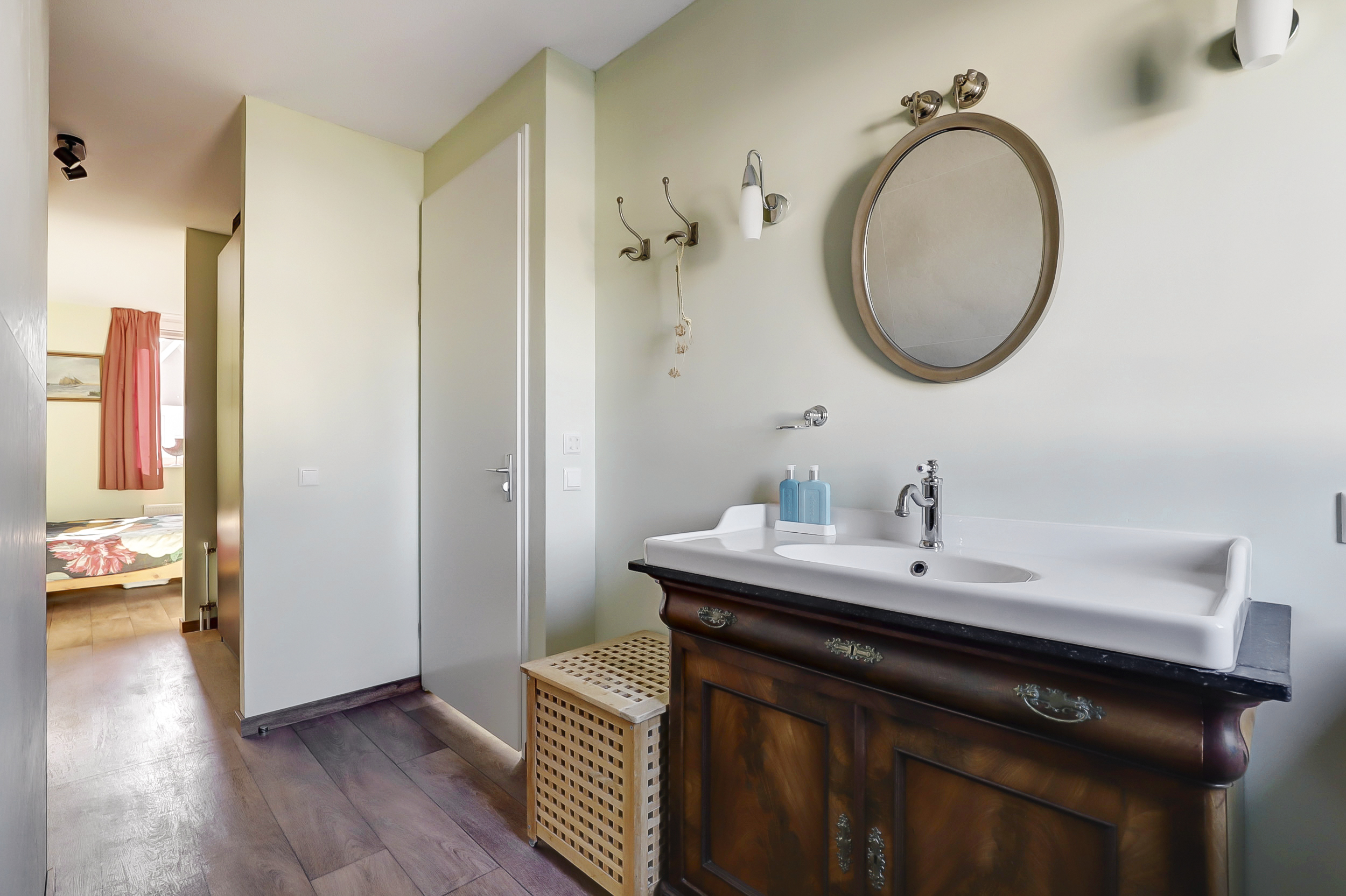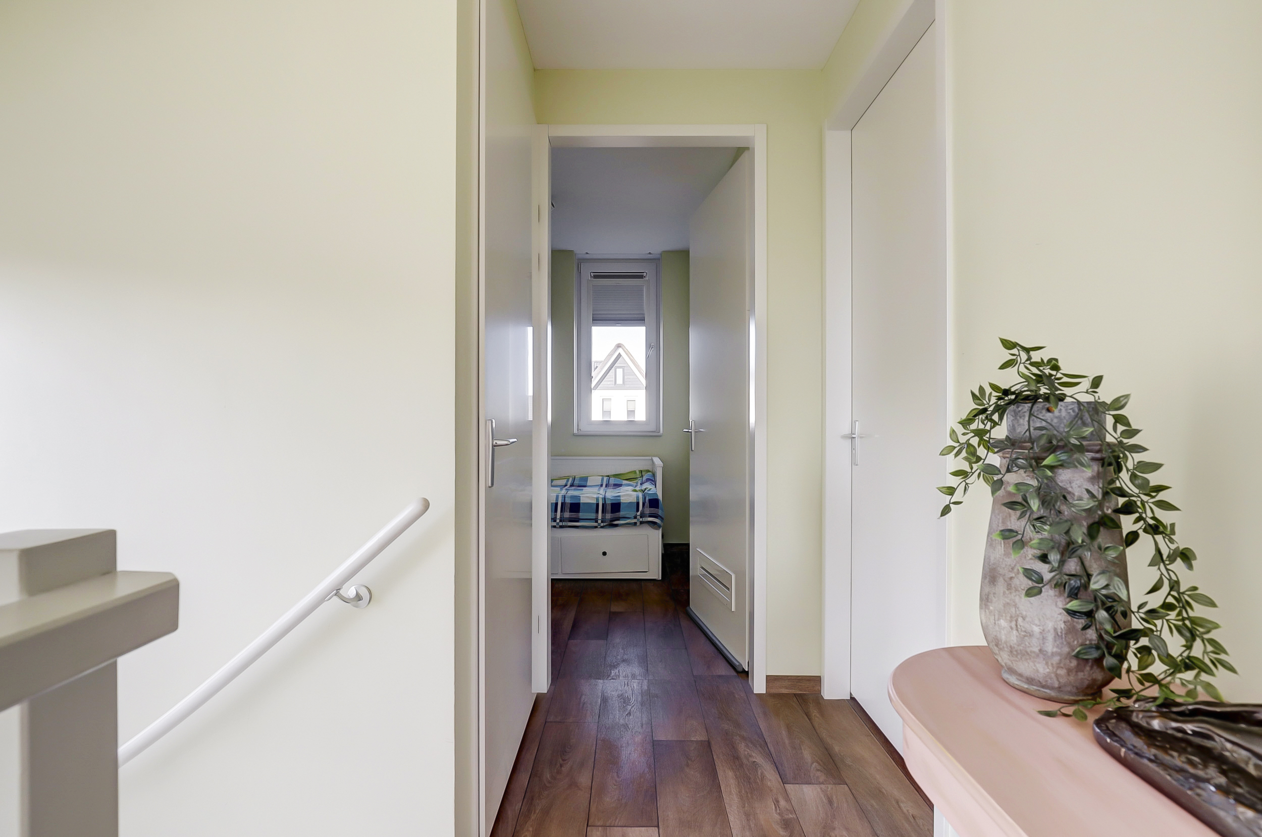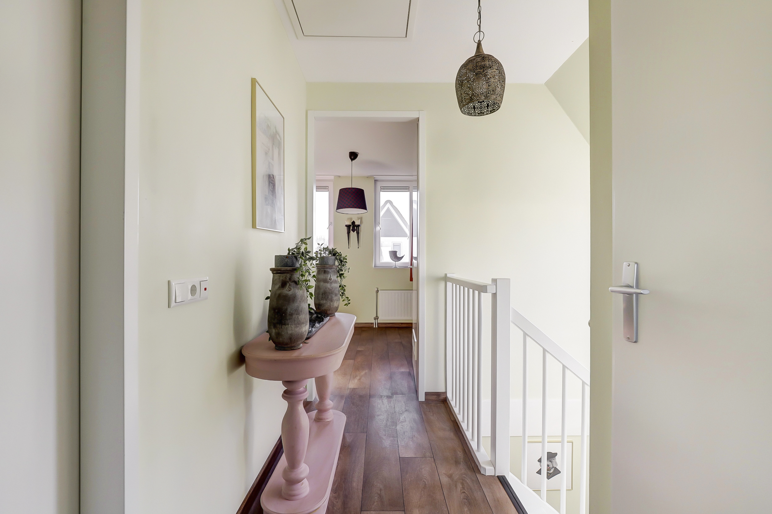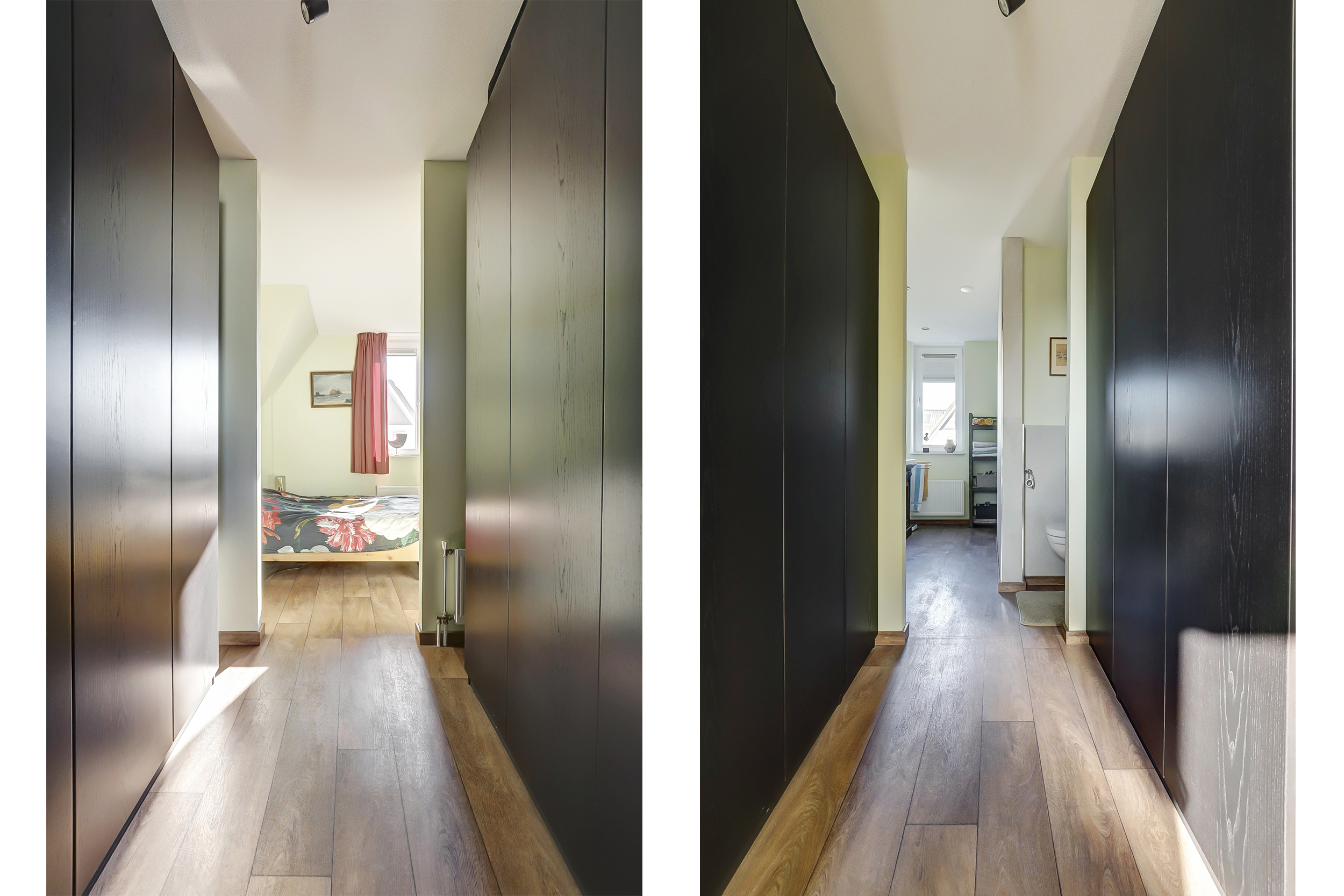 De ruimte die momenteel als inloopkast gebruikt wordt, zorgt voor extra ruimte. Deze kamer kan omgebouwd worden tot bijvoorbeeld een babykamer of werkkamer. Hierdoor creëer je nog meer ruimte voor een ideale gezinswoning.