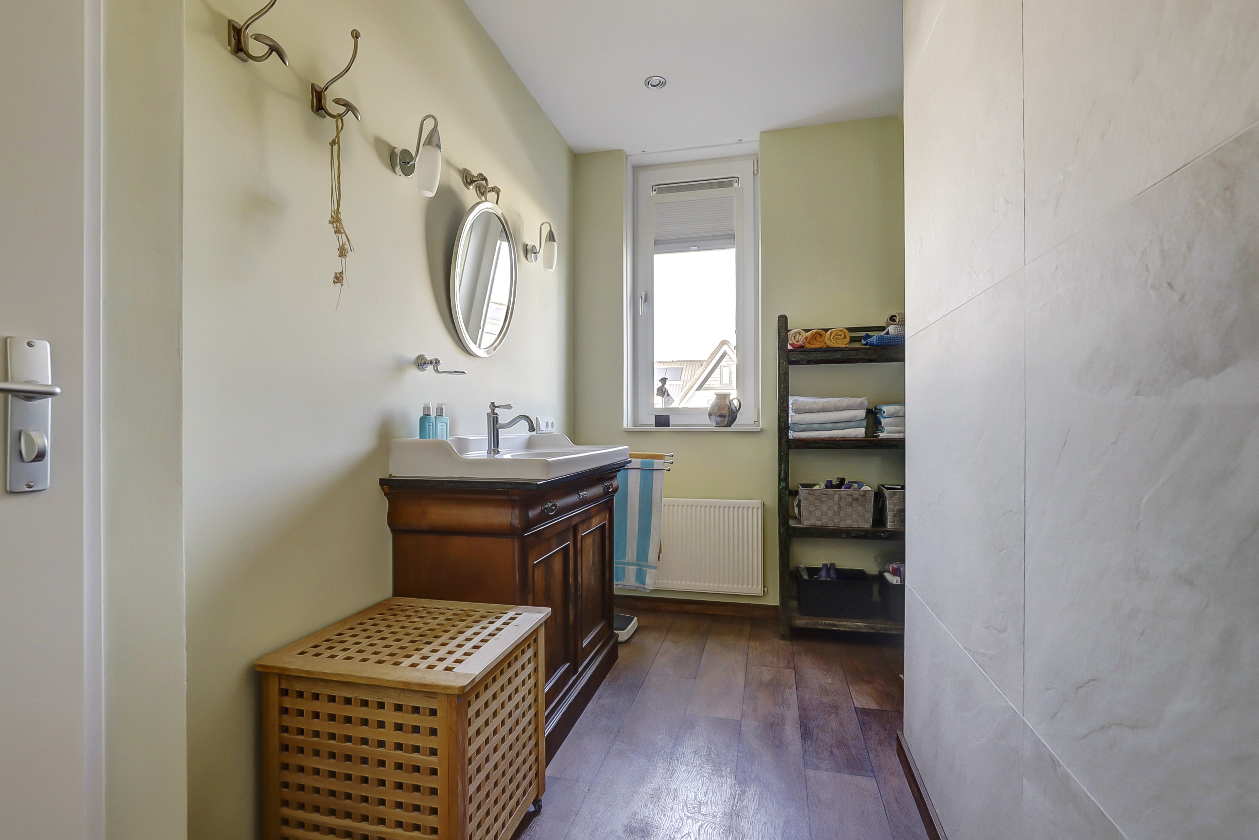 Wat deze ruimte extra interessant maakt, is dat ze volledig geïsoleerd is en al beschikt over diverse voorzieningen om eenvoudig te transformeren naar een comfortabele slaapruimte met badkamer. Zo is er bijvoorbeeld al vloerverwarming aanwezig. Dankzij deze voorbereidingen is een verbouwing snel en relatief eenvoudig te realiseren.