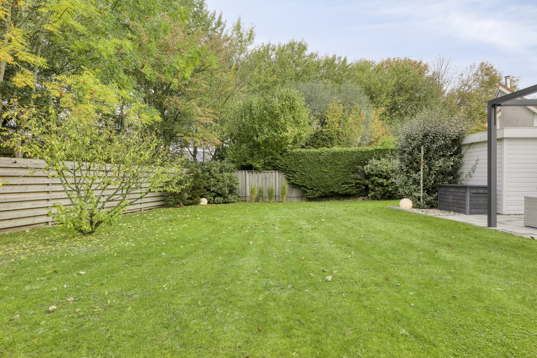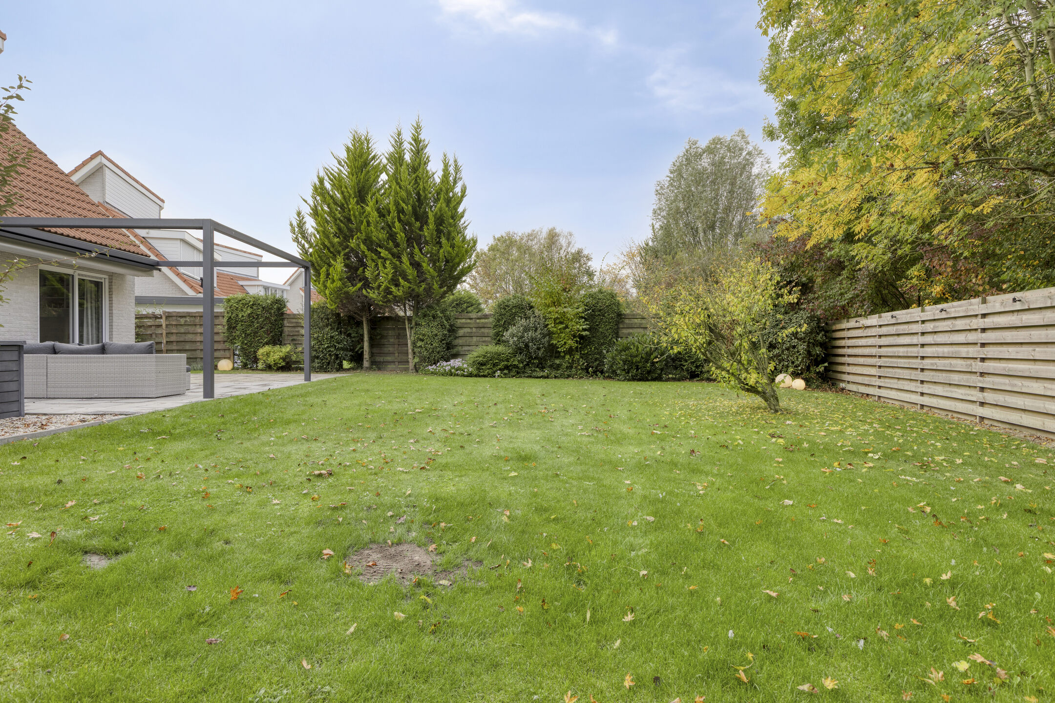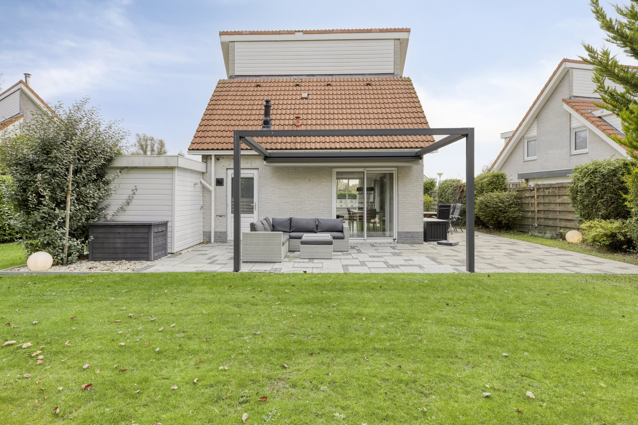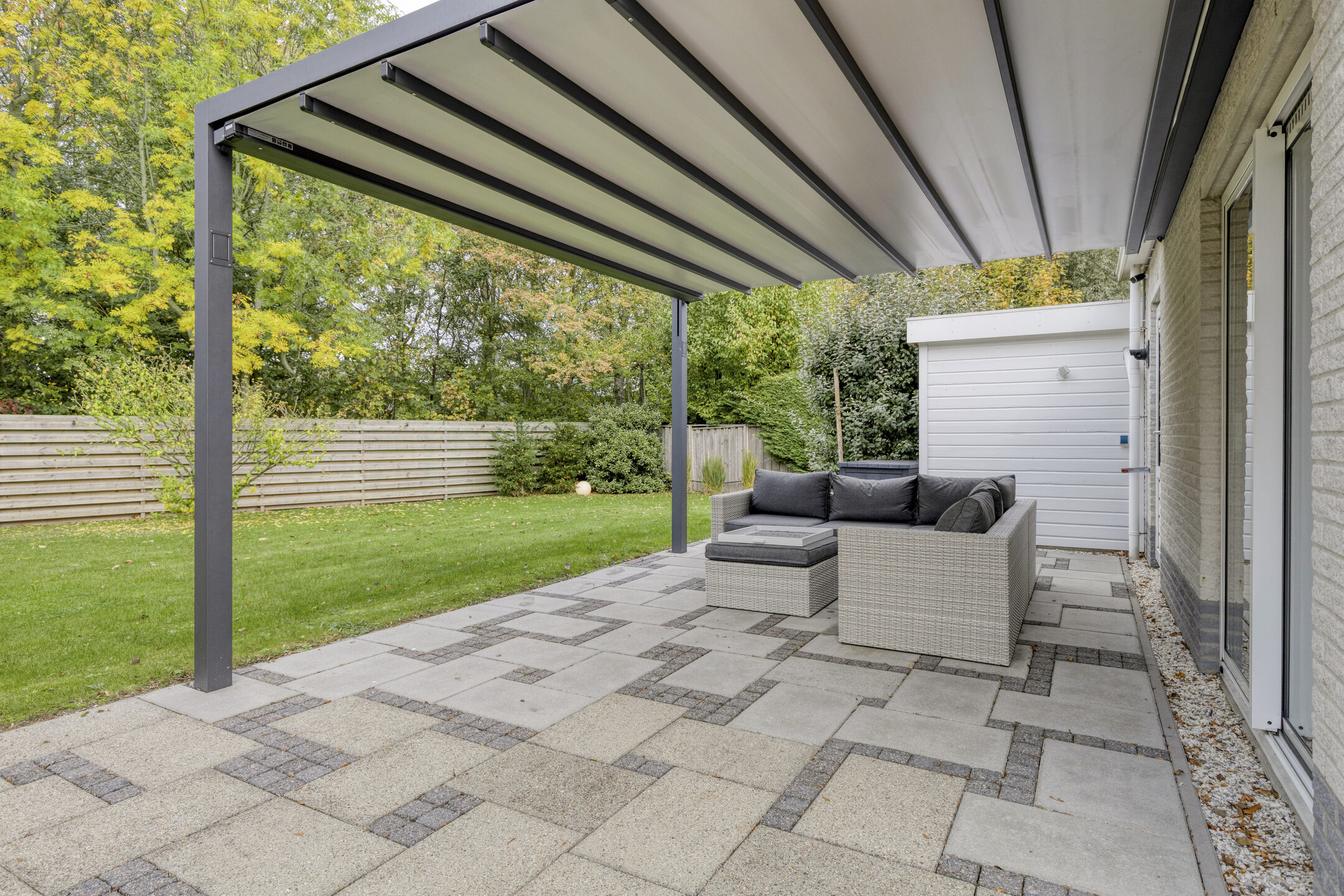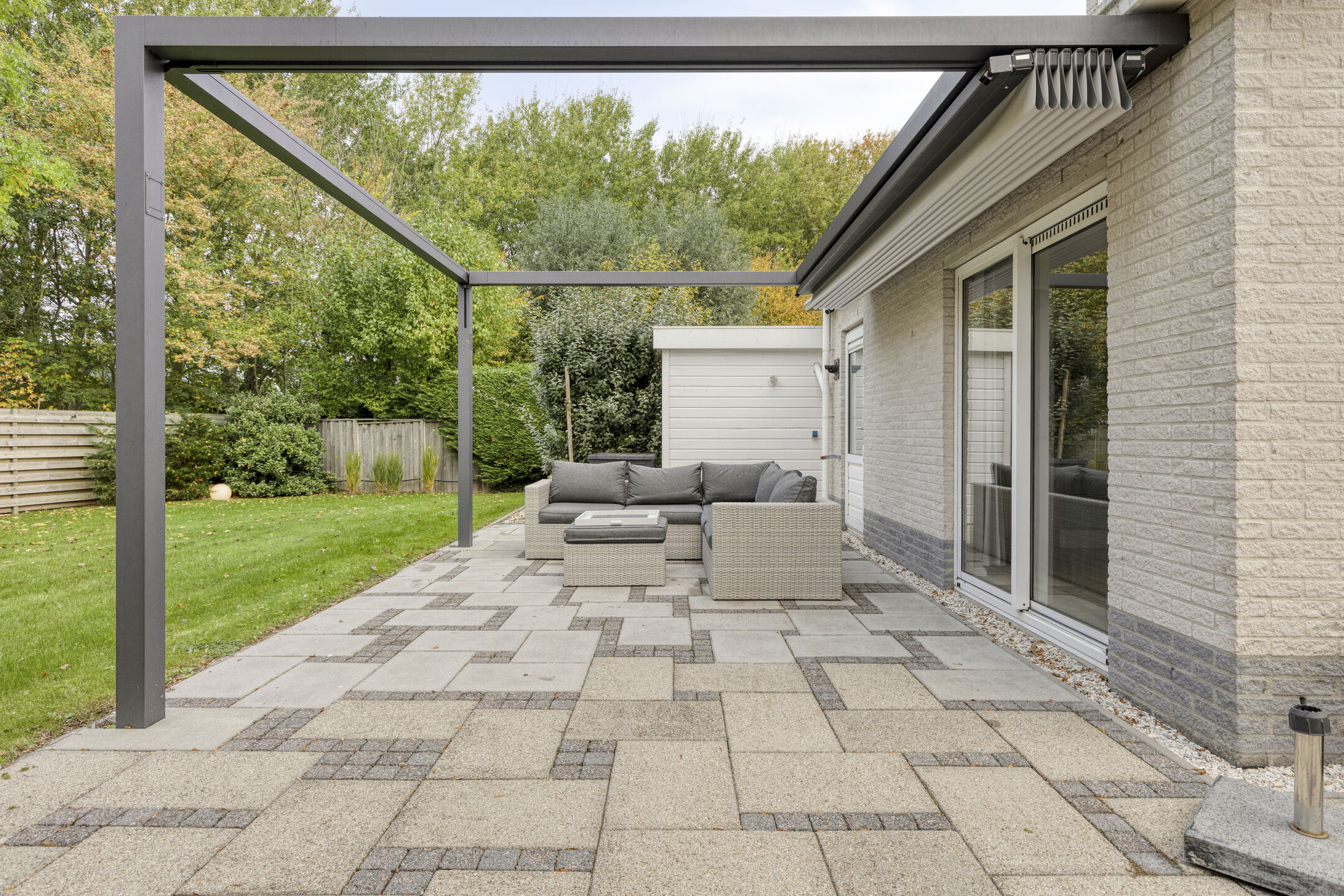 De omheinde tuin ligt rondom de woning en aan de achterzijde is een fijne overkapping gerealiseerd. Aan de zijkant is een aangebouwde berging, voorzien van elektra. Deze is via buiten bereikbaar.