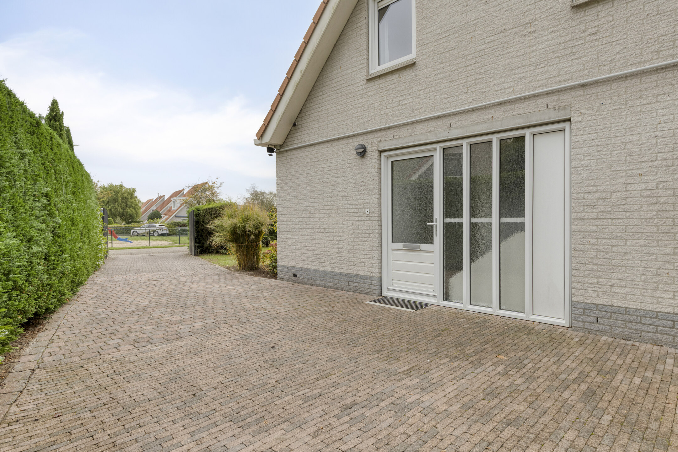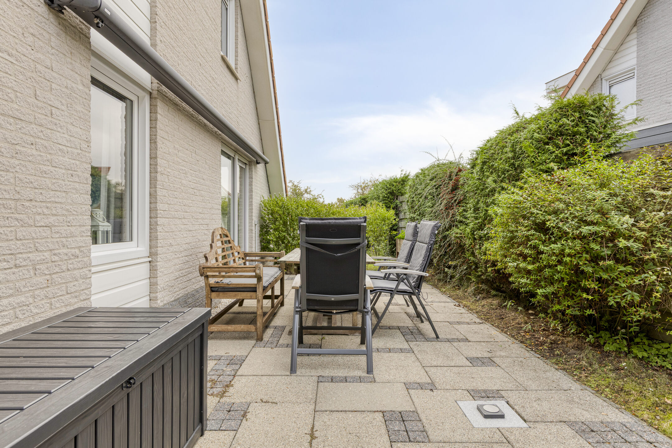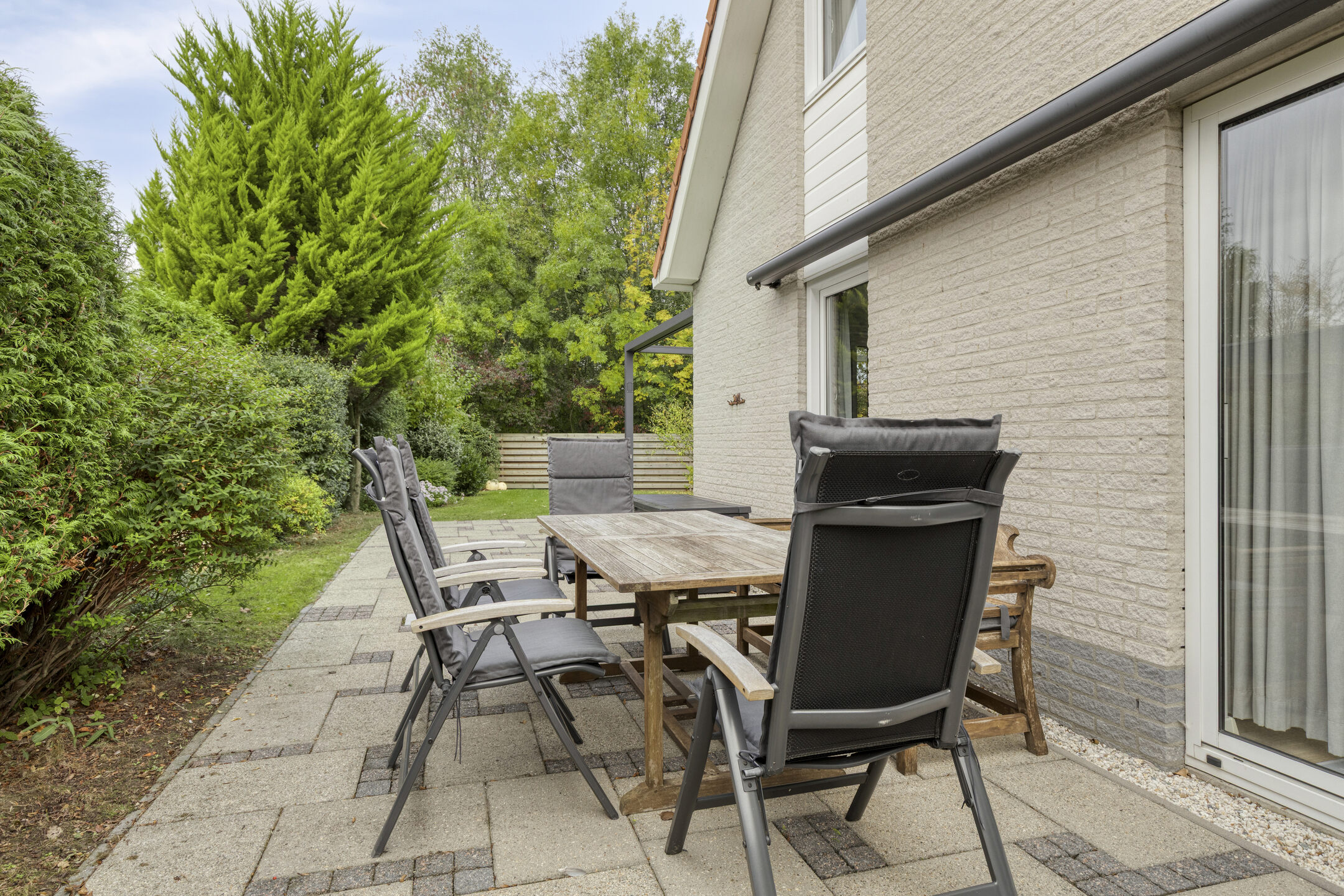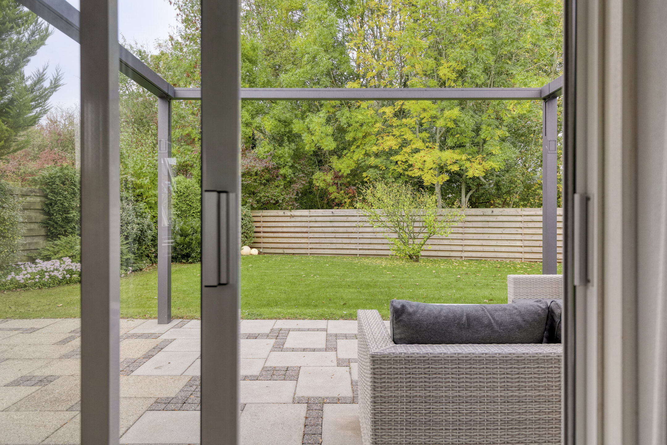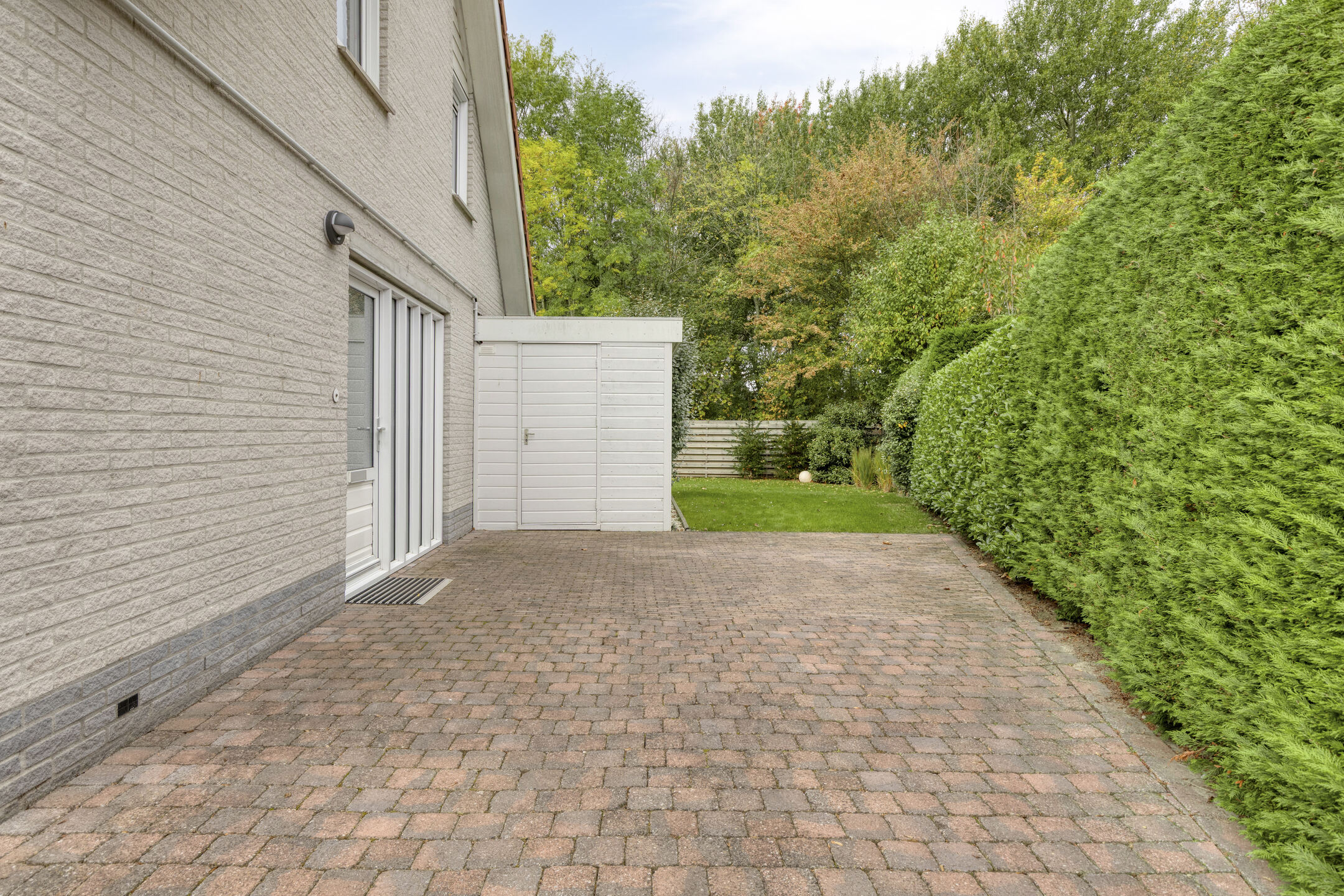 De omheinde tuin ligt rondom de woning en aan de achterzijde is een fijne overkapping gerealiseerd. Aan de zijkant is een aangebouwde berging, voorzien van elektra. Deze is via buiten bereikbaar.