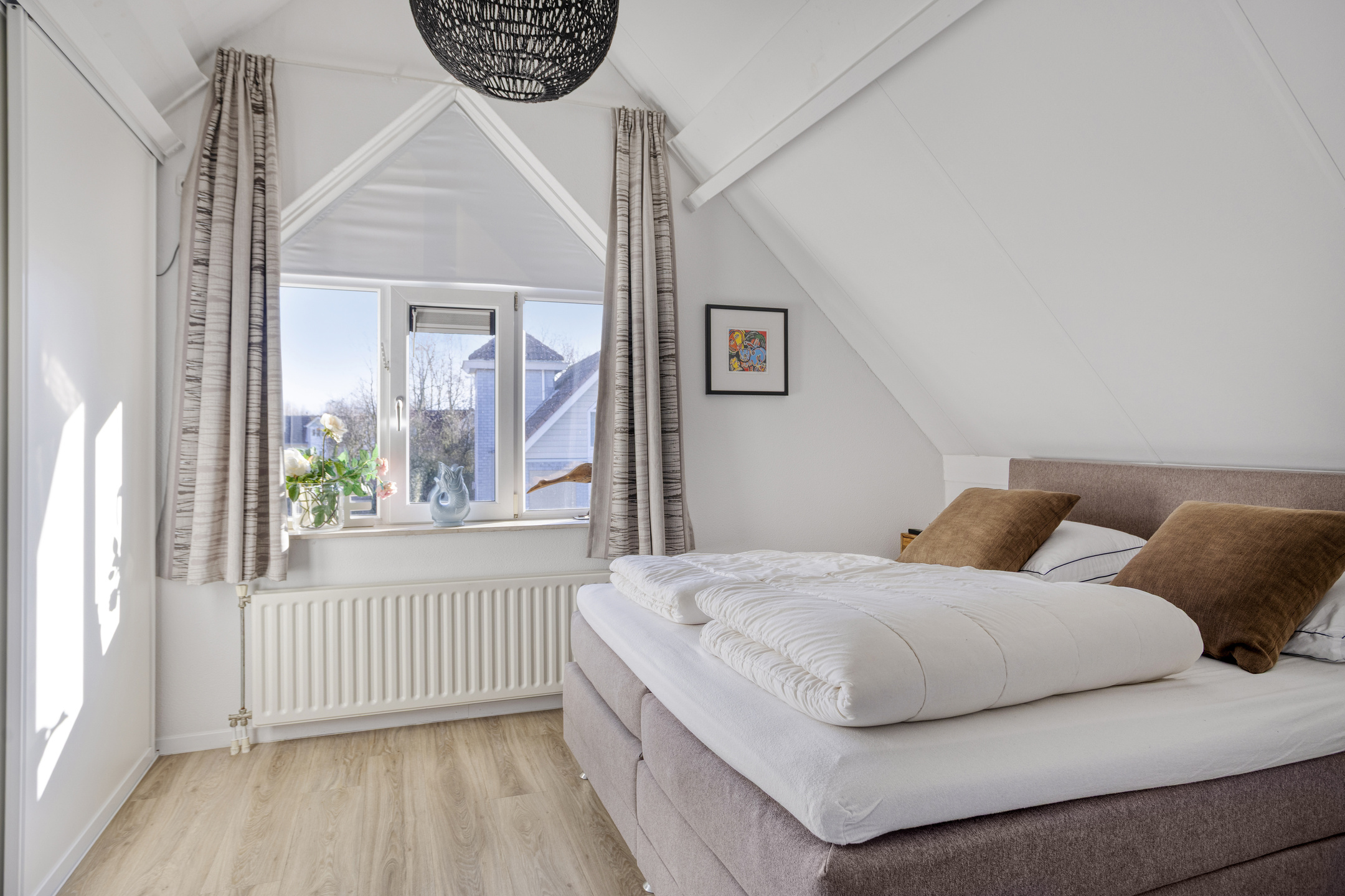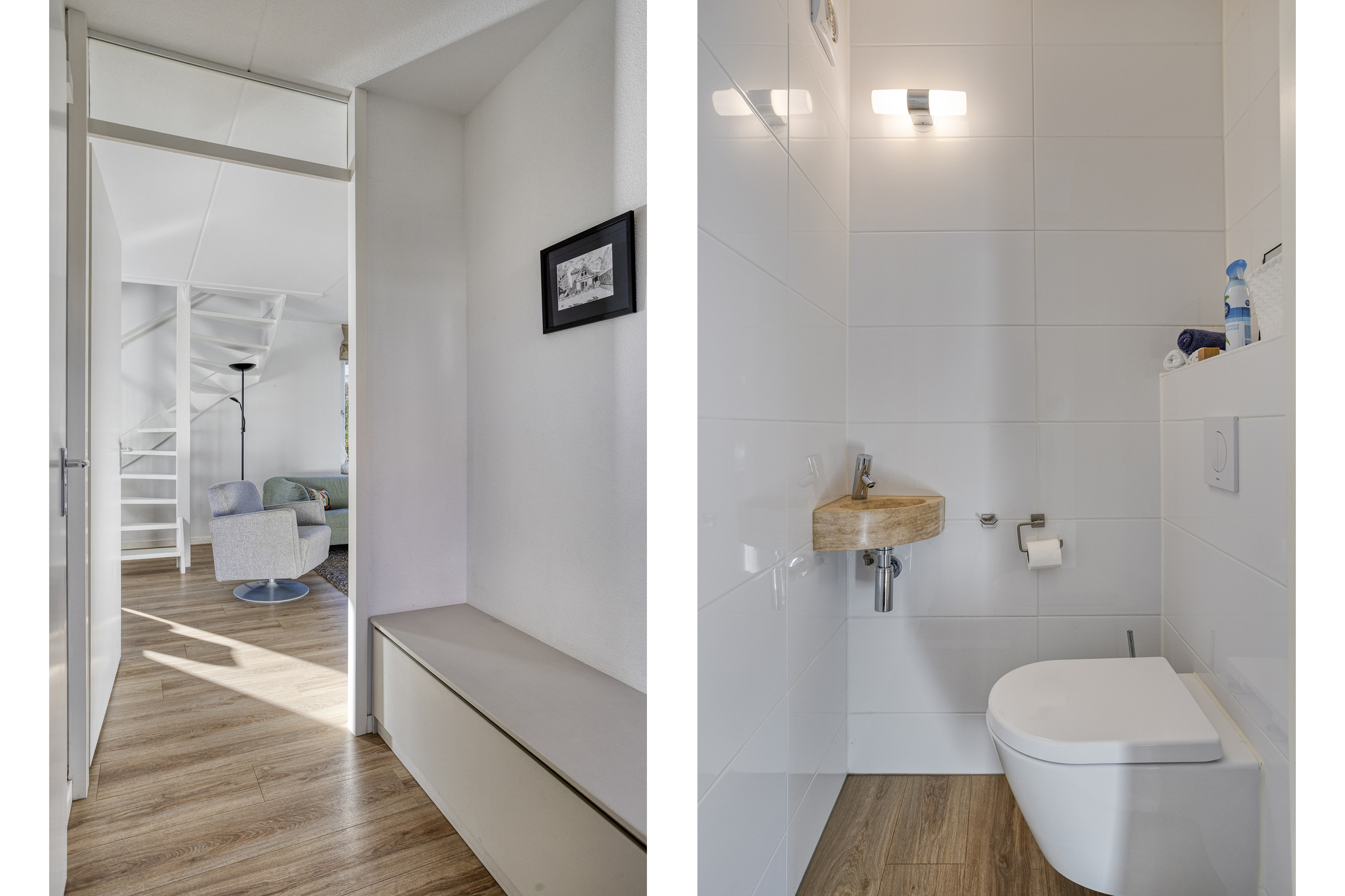 Via een vaste trap in de woonkamer bereik je de eerste verdieping. Op de overloop is er toegang tot drie slaapkamers en de badkamer. De grootste slaapkamer beschikt over extra kastruimte. De badkamer is compleet uitgevoerd met een toilet, inloopdouche en wastafelmeubel.