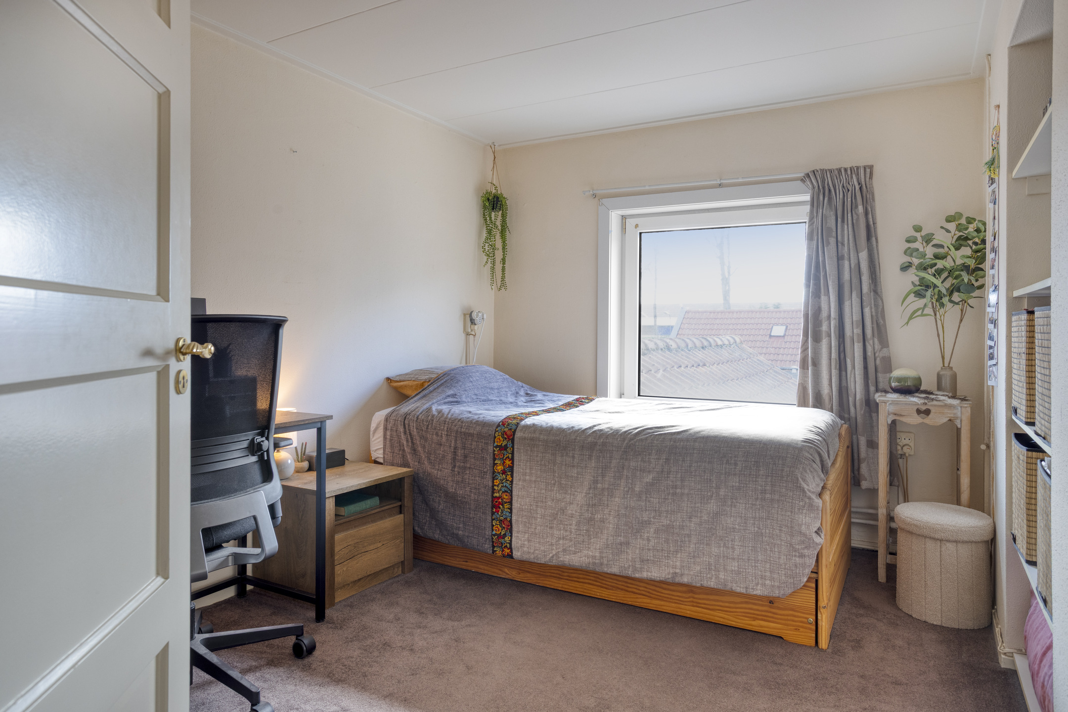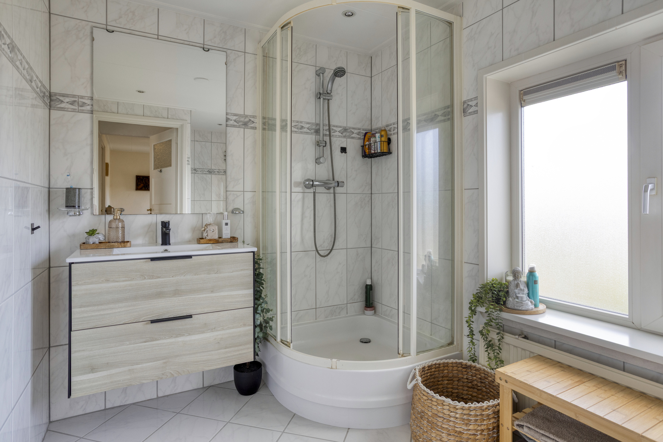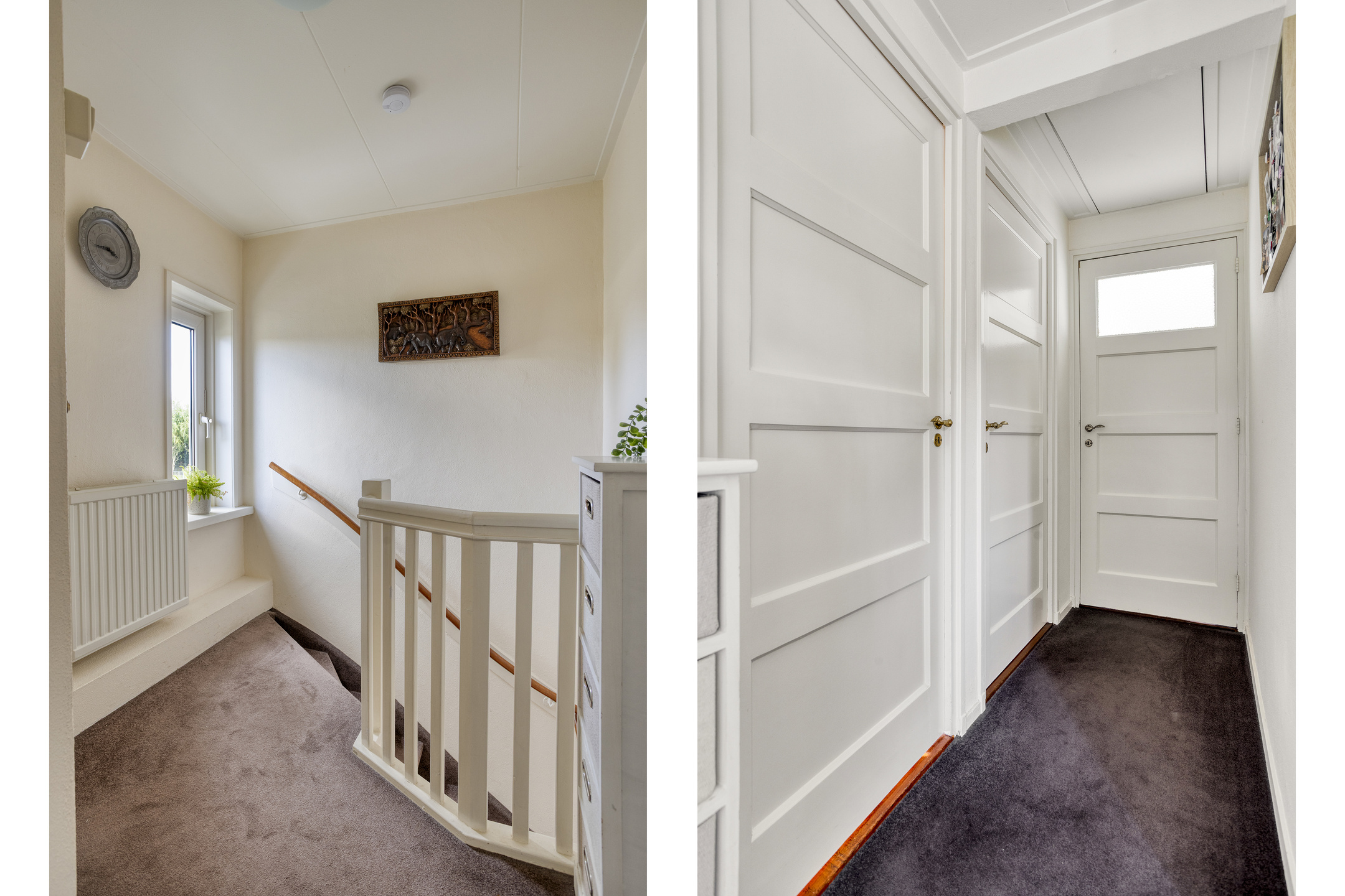 Via de trap in de entree bereik je de eerste verdieping. Hier kom je terecht op de overloop, van waaruit je toegang hebt tot een inbouwkast, twee slaapkamers en de ruime badkamer. De badkamer is voorzien van een toilet, wastafel en een douche. Via een vlizotrap is de zolder bereikbaar.