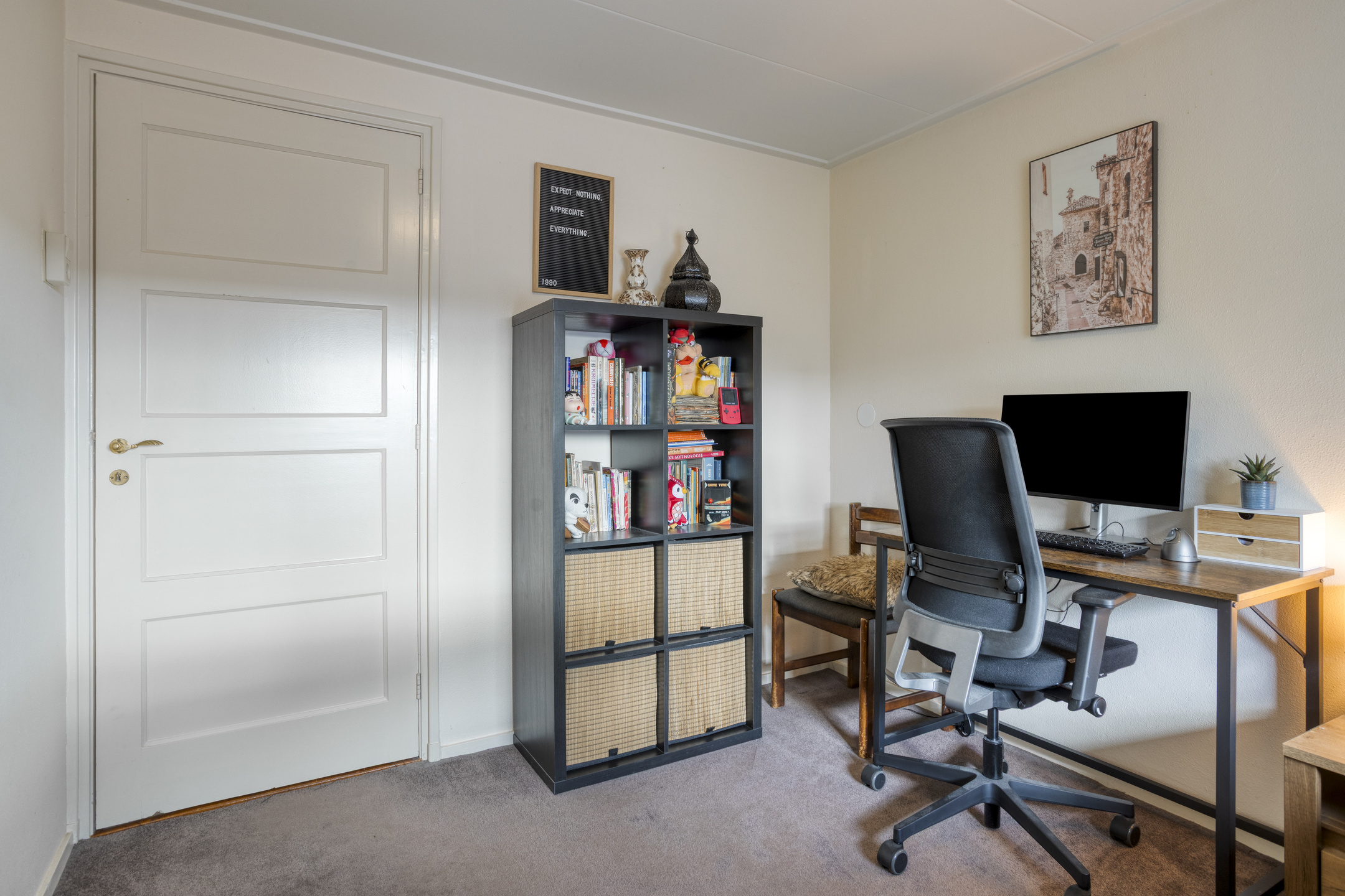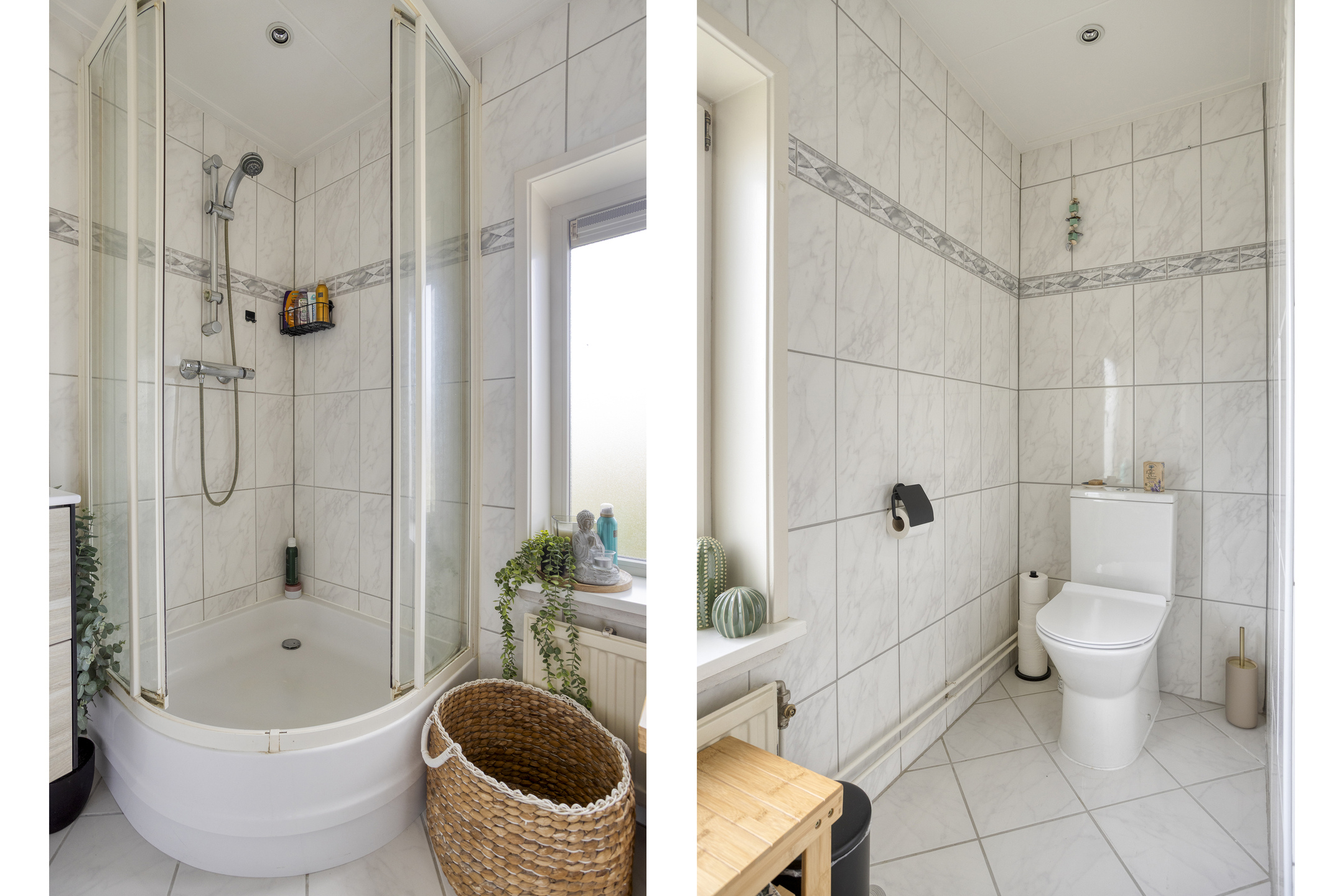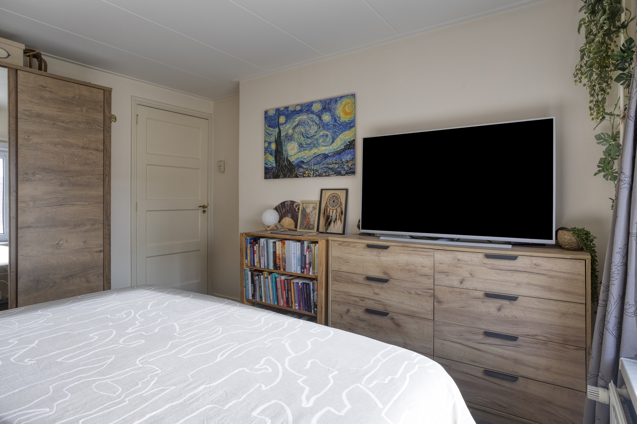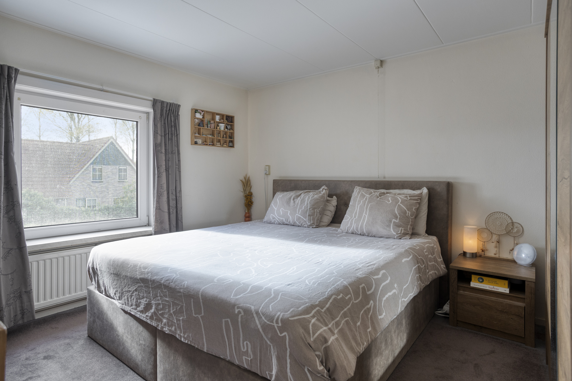 Via de trap in de entree bereik je de eerste verdieping. Hier kom je terecht op de overloop, van waaruit je toegang hebt tot een inbouwkast, twee slaapkamers en de ruime badkamer. De badkamer is voorzien van een toilet, wastafel en een douche. Via een vlizotrap is de zolder bereikbaar.